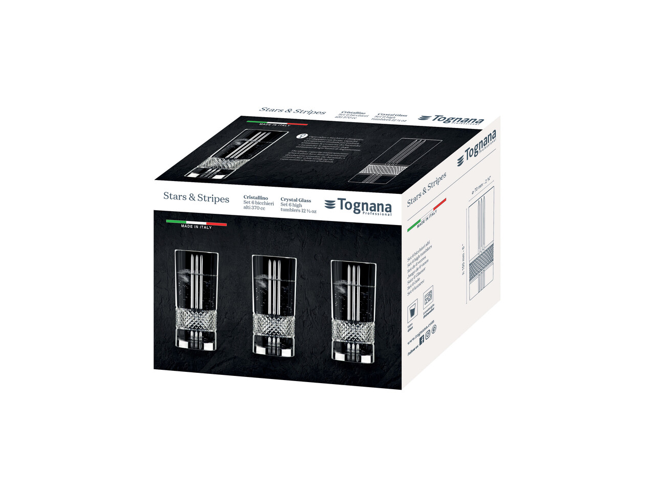 Set 6 pahare Cooler Stars and Stripes, Tognana Porcellane, 370 ml, sticla, transparent