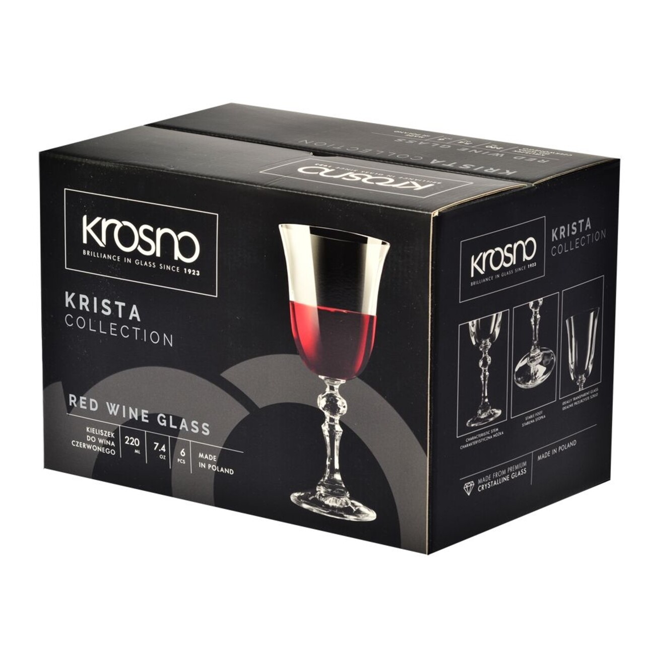 Set 6 pahare pentru vin rosu, Krosno, Krista, 220 ml, sticla cristal