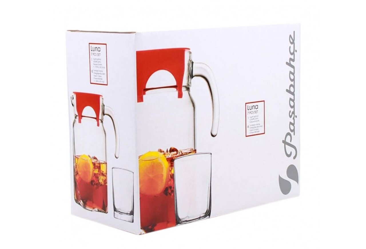 Set 6 pahare si carafa Luna, Pasabahce, 1.7 L/245 ml, sticla, transparent