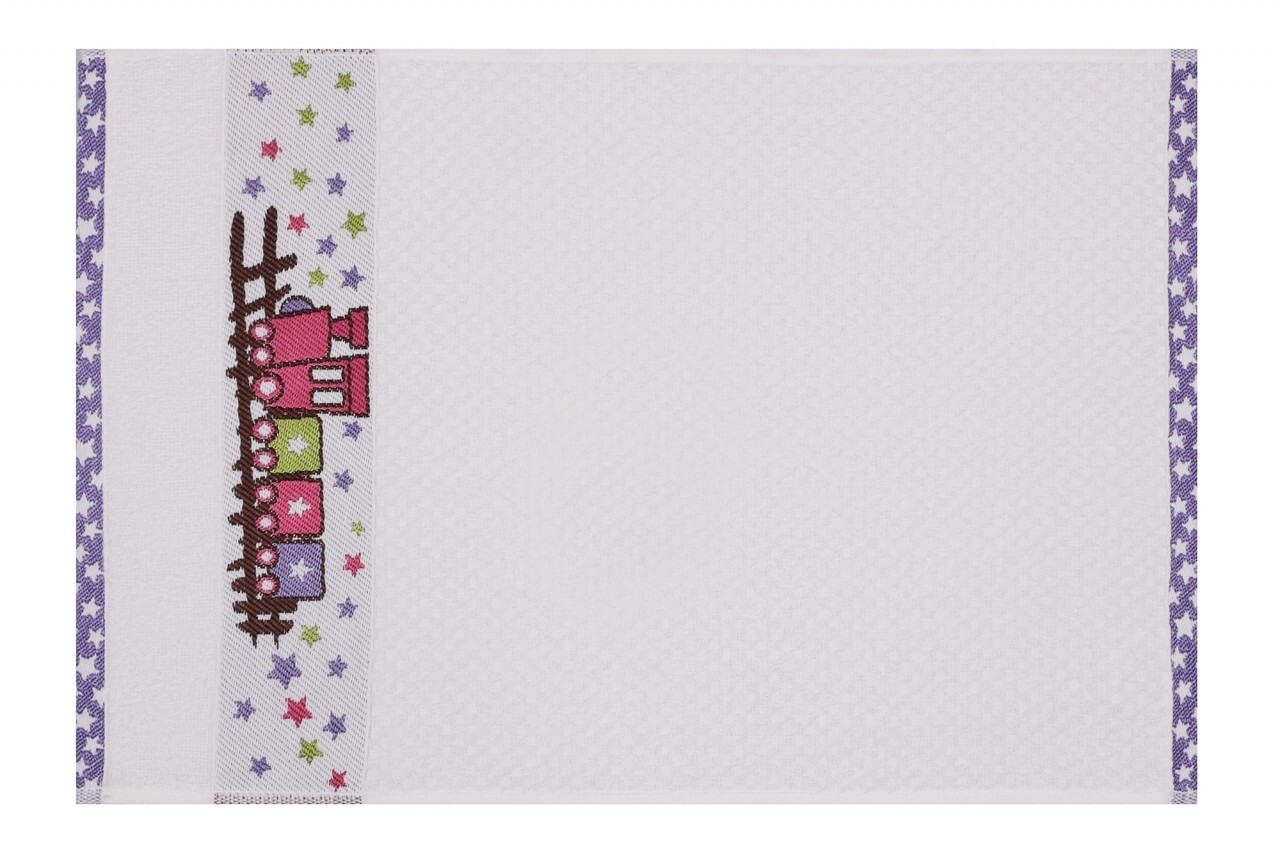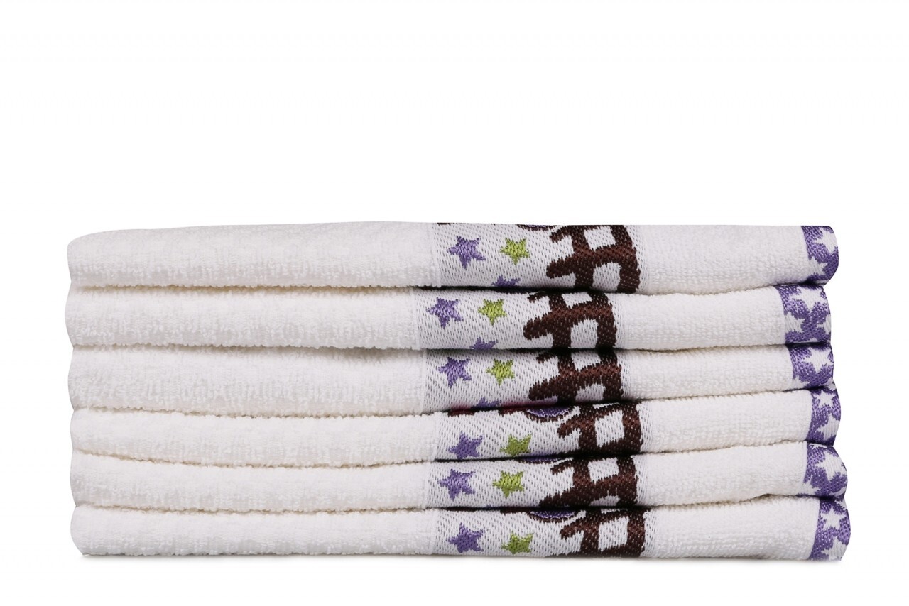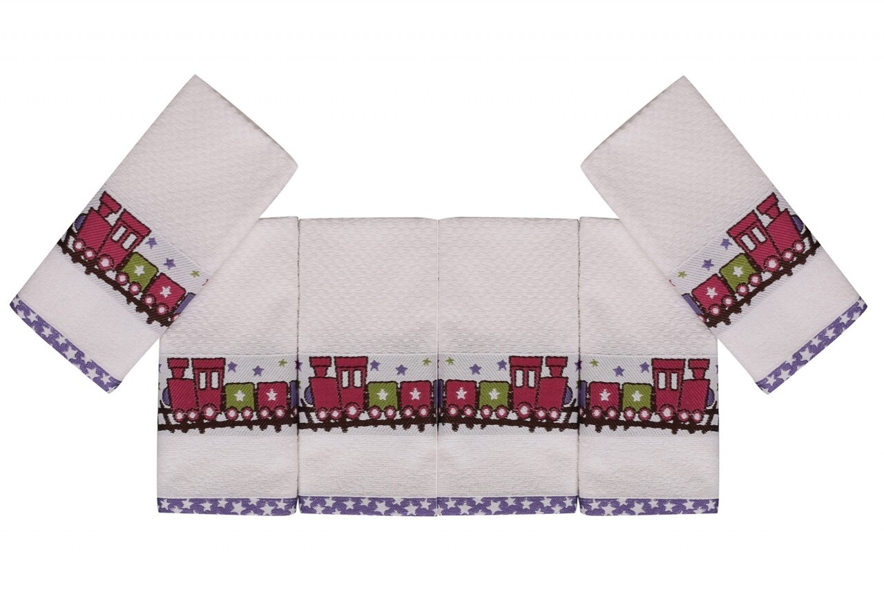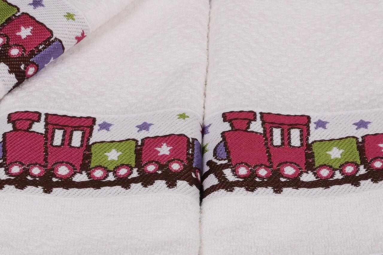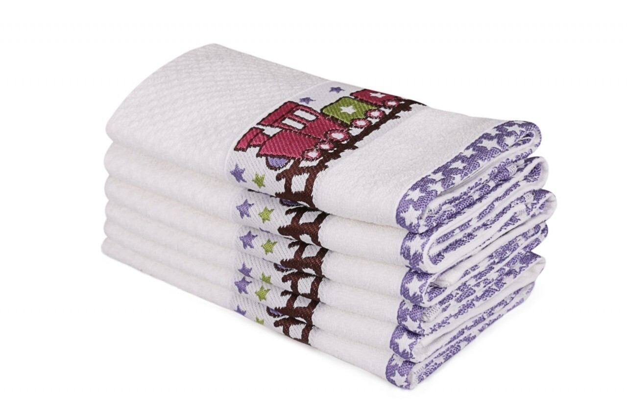 Set 6 prosoape 30x50 cm, 100% bumbac, Saheser,Bordürlü Beyaz Renkli Tren