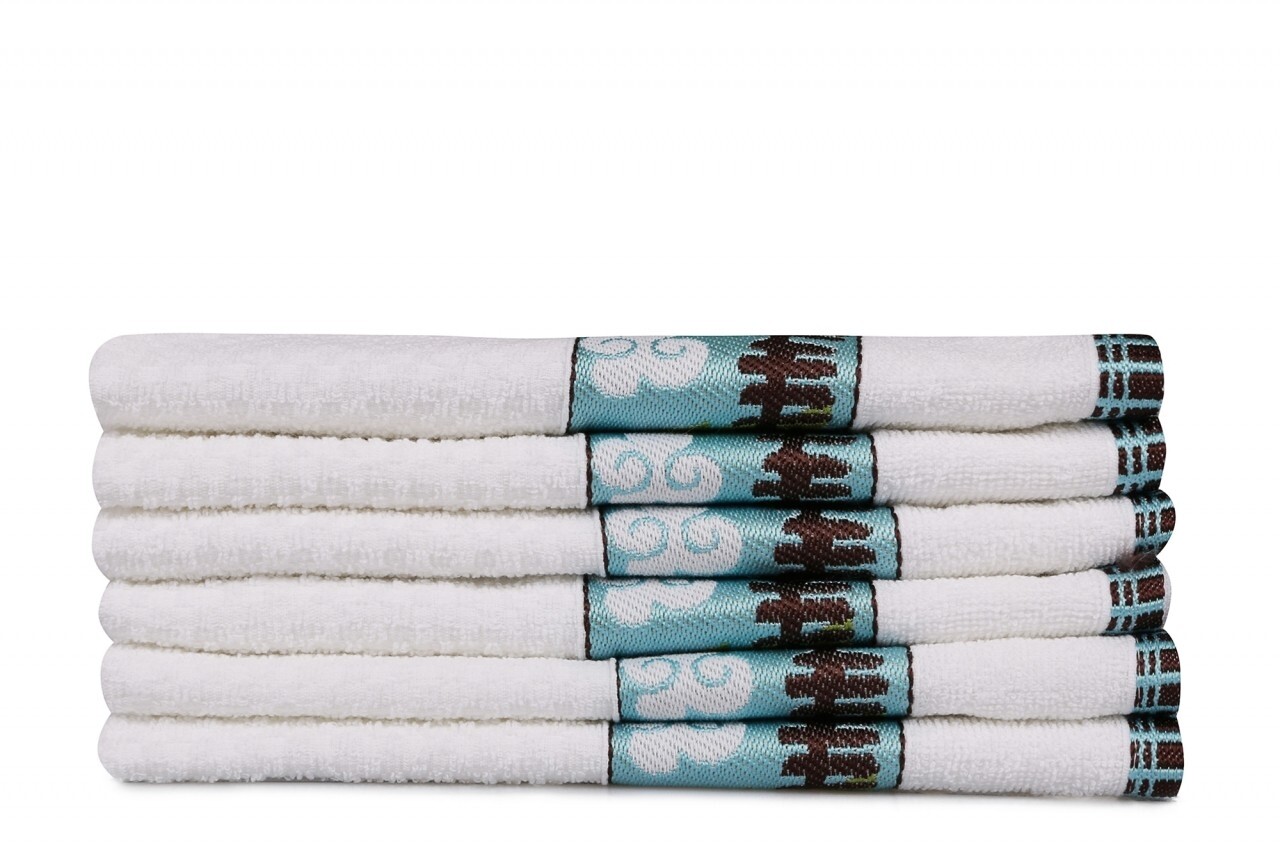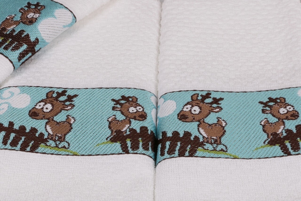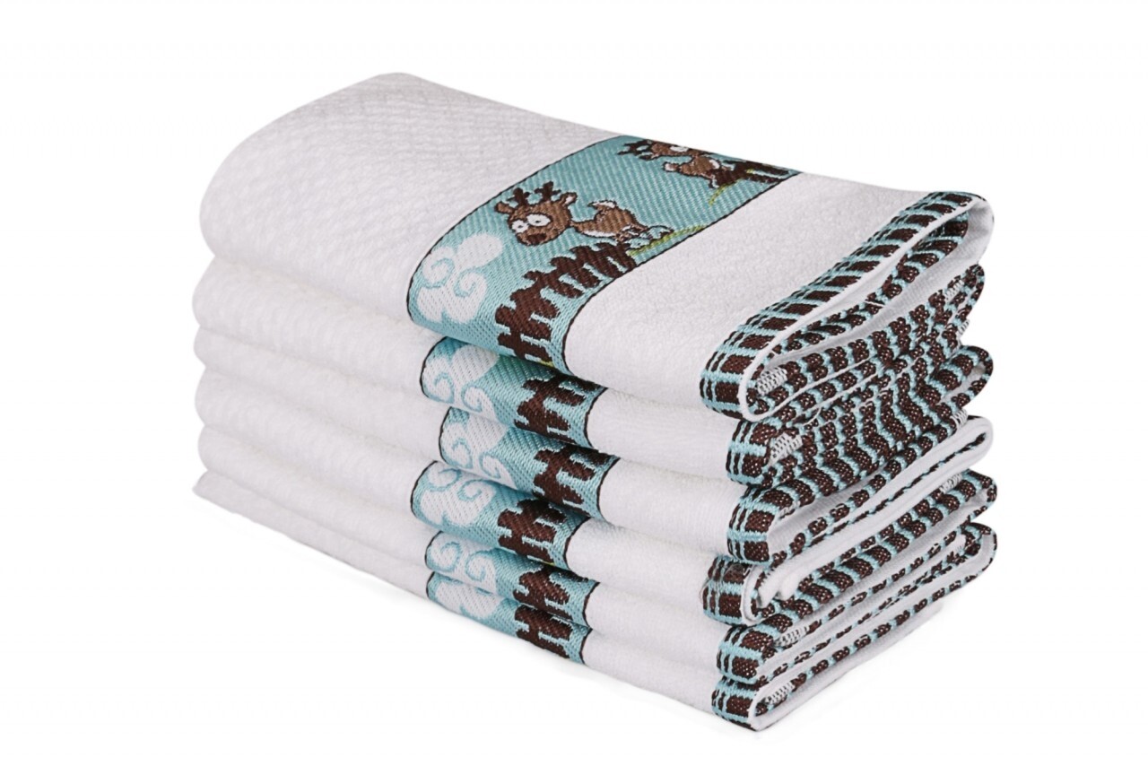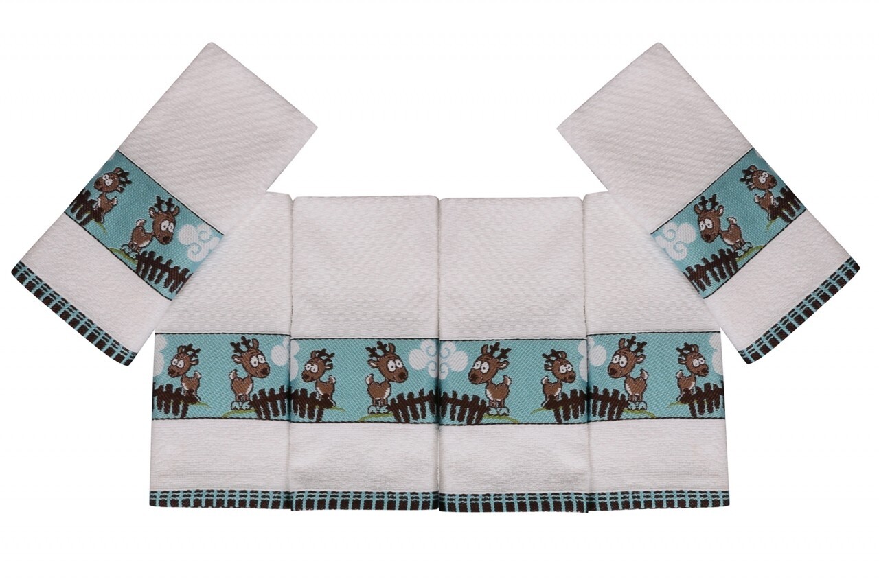 Set 6 prosoape Bordürlü Beyaz Geyikli Çiftlik, Saheser, 30 x 50 cm, 100% bumbac, alb