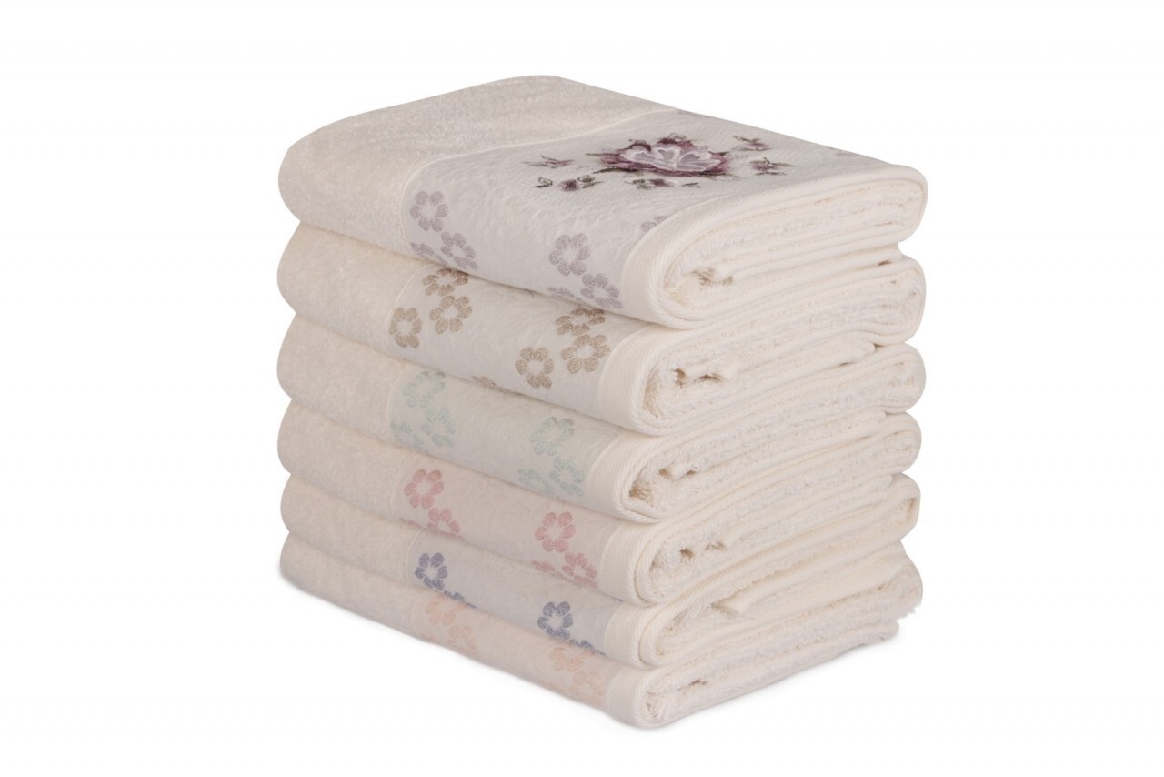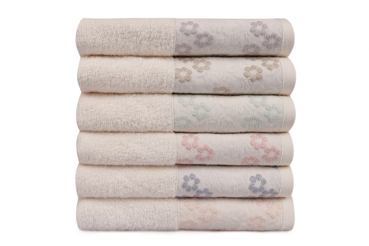 Set 6 prosoape de maini 50x90 cm, 100% bumbac, Saheser, CeCek Desen 3D CiCekli Renkli Papatya