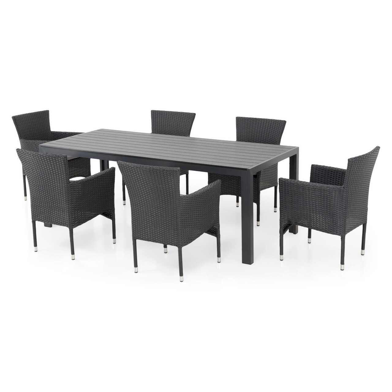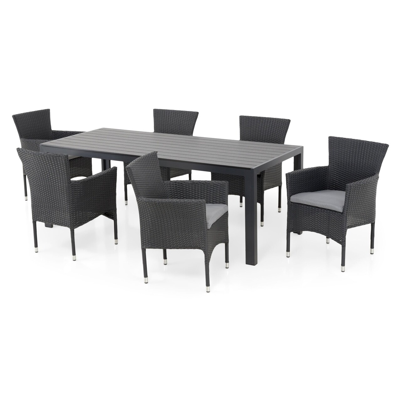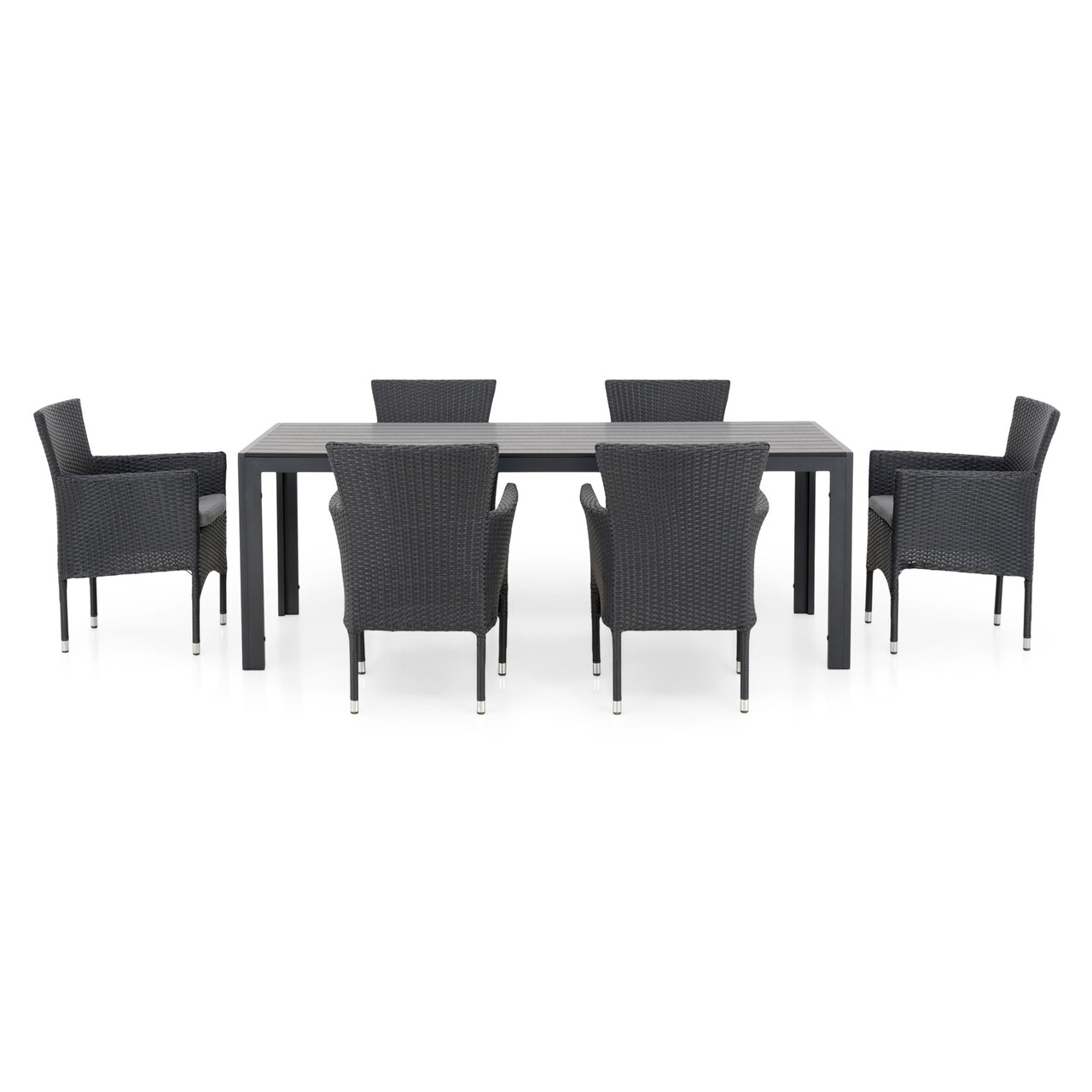 Set 6 scaune cu spatar reglabil si masa mare Encore, aluminiu, negru