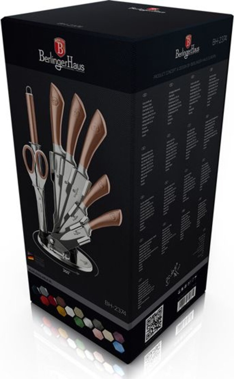 Set 7 cutite cu suport, Berlinger, Rose Gold Collection, inox/plastic