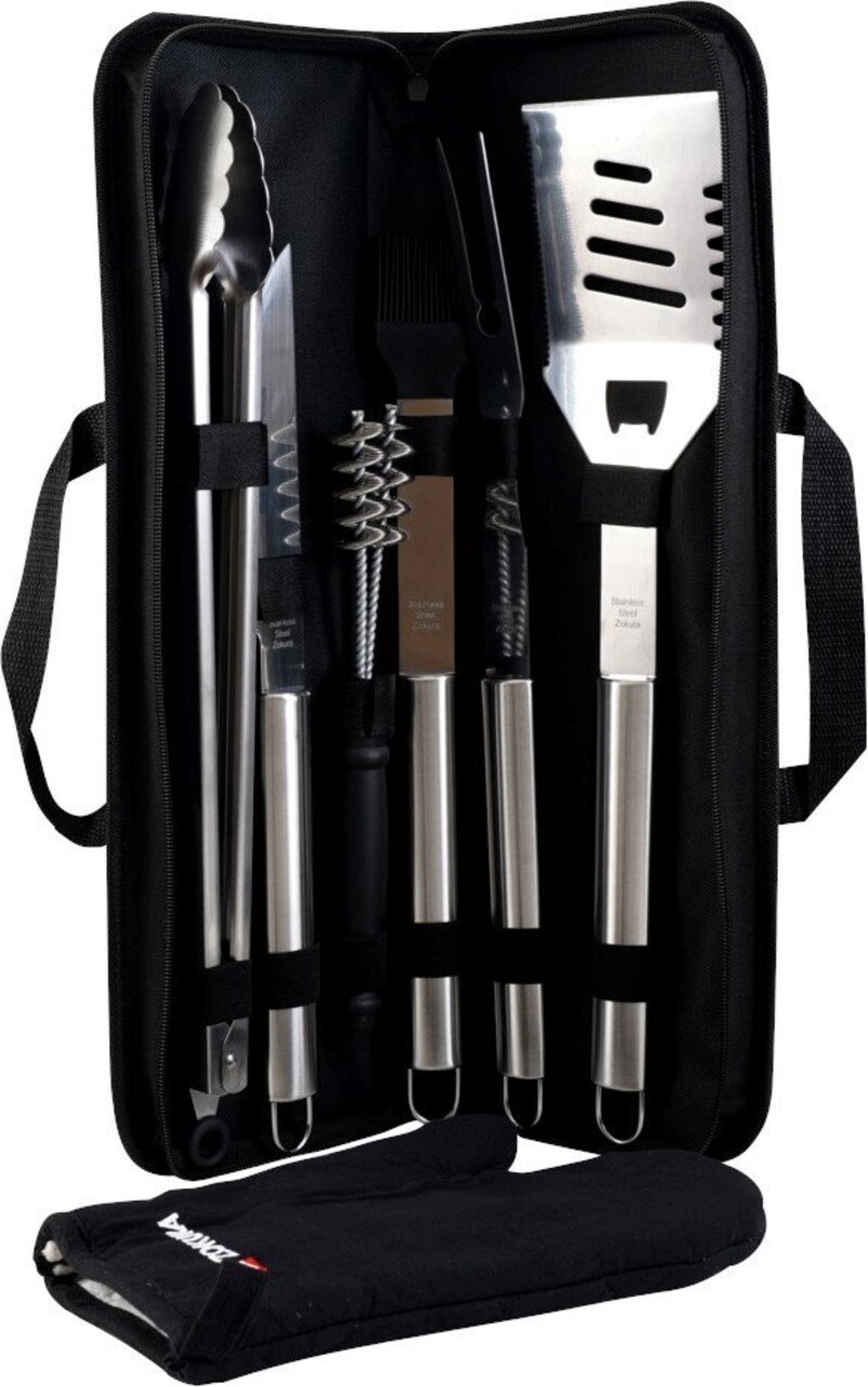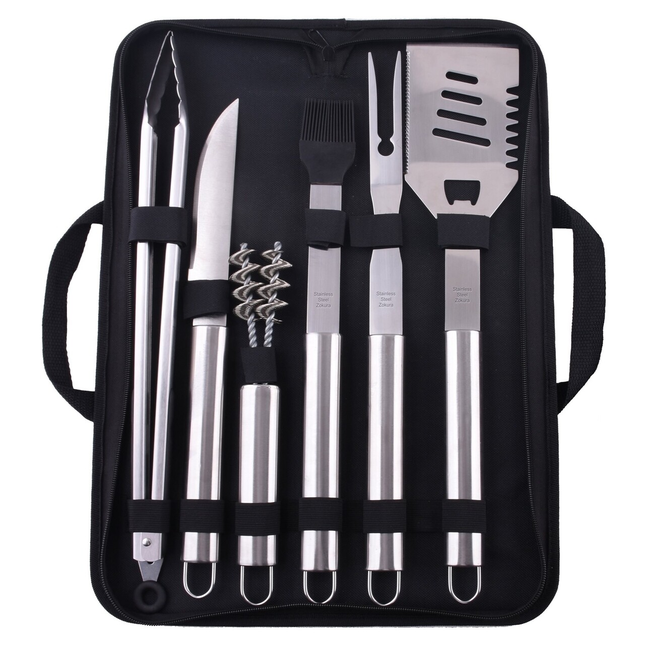 Setul pentru gratar, marca Zokura, este compus din 8 piese si ofera instrumentele esentiale si necesare la pregatirea gustoaselor preparate la gratar.