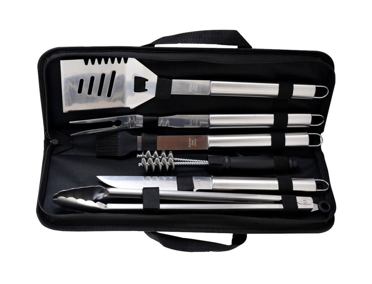 Fabricate din inox, ustensilele sunt rezistente si ideale pentru utilizarea frecventa, deoarece nu se deterioreaza usor, iar cand nu sunt folosite, ele asteapta bine organizate in geanta pentru depozitare usor de transportat, fabricata din nylon.