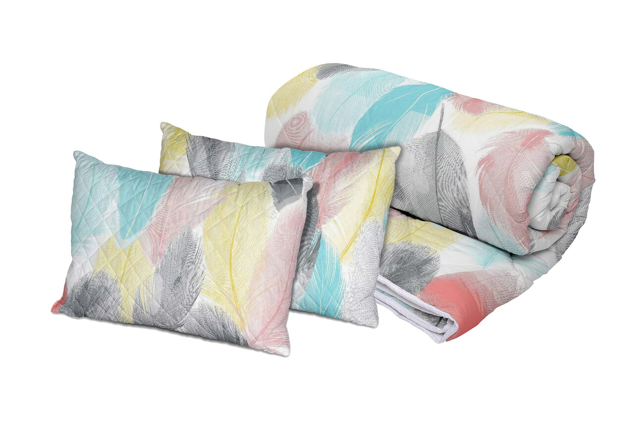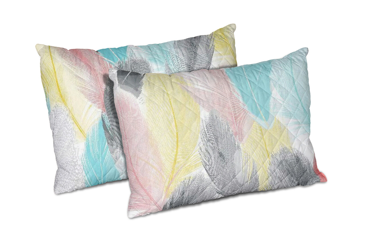Set Alcam, Peacock, 2 perne microfibra 50x70 cm si pilota matlasata 180x200 cm