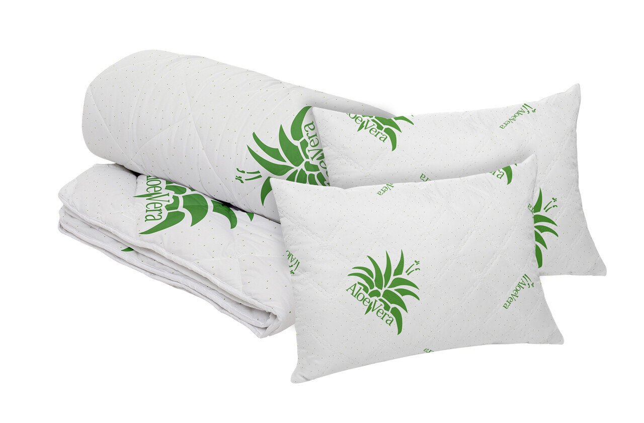 Set Aloe Vera Essence, 2 perne microfibra 50x70 cm si pilota matlasata 350g/mp, 200x220 cm