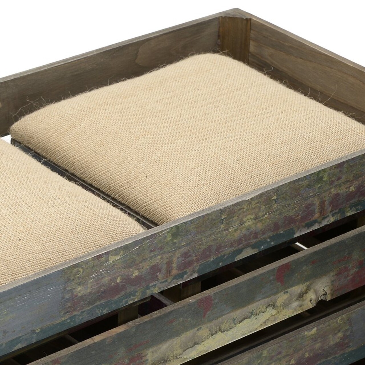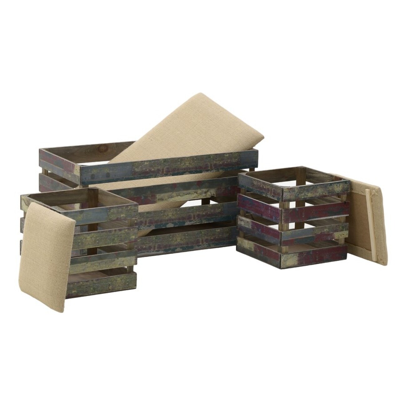 Set bancheta si 2 taburete cu spatiu de depozitare Flower and Market, InArt, lemn de brad, vintage