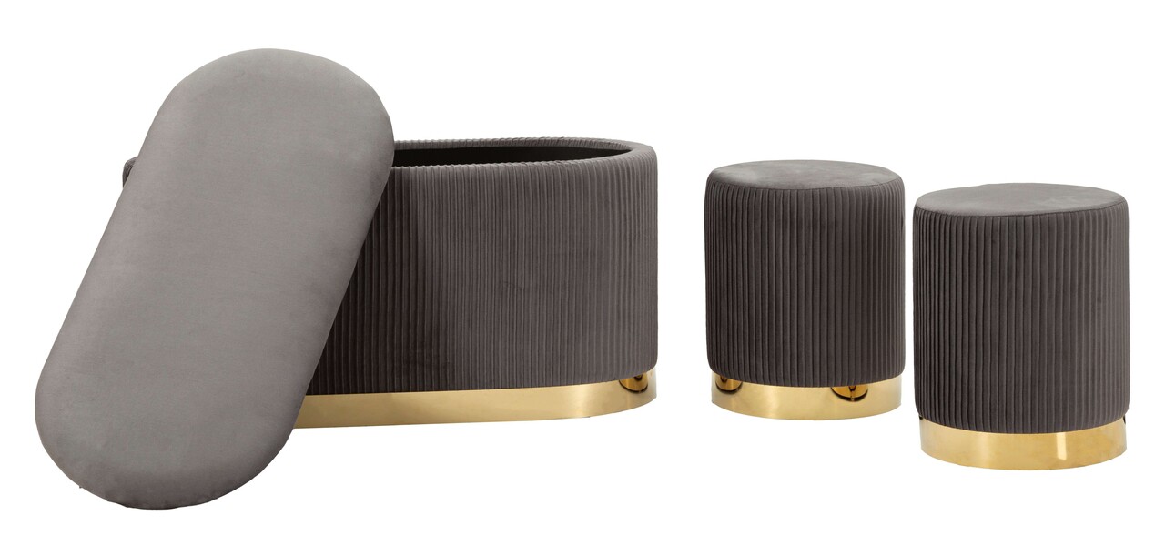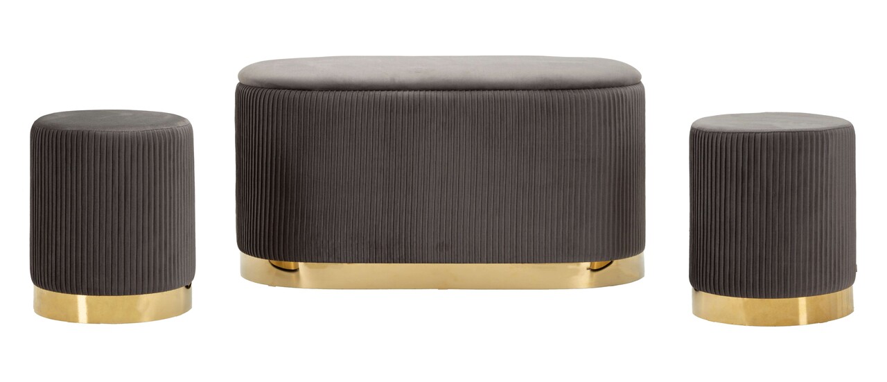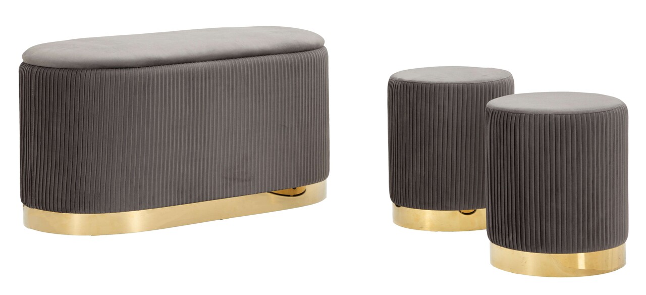Set bancheta si 2 taburete Shopy, Mauro Ferretti, 80x37x42 cm, 29x35 cm, fier/MDf/poliester, gri/auriu