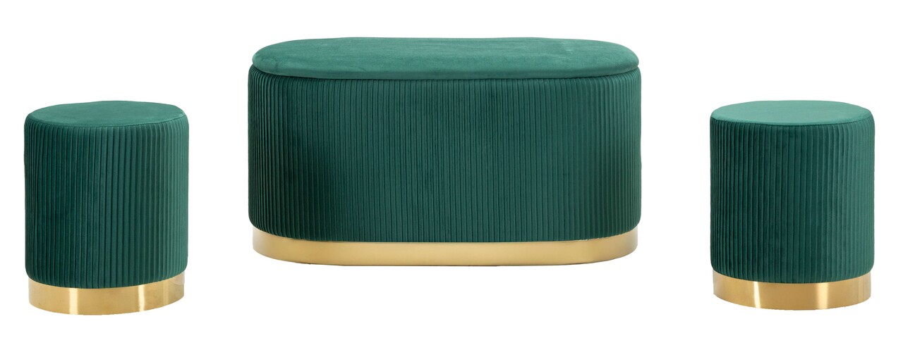 Set bancheta si 2 taburete Shopy, Mauro Ferretti, 80x37x42 cm, 29x35 cm, fier/MDf/poliester, verde/auriu