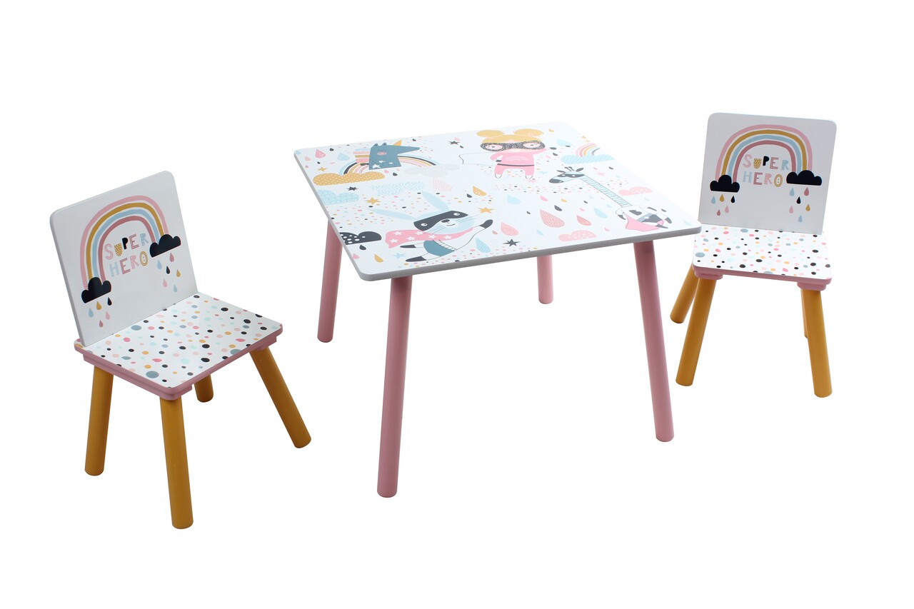 Set birou cu 2 scaune Super girl, U-grow, MDF, multicolor