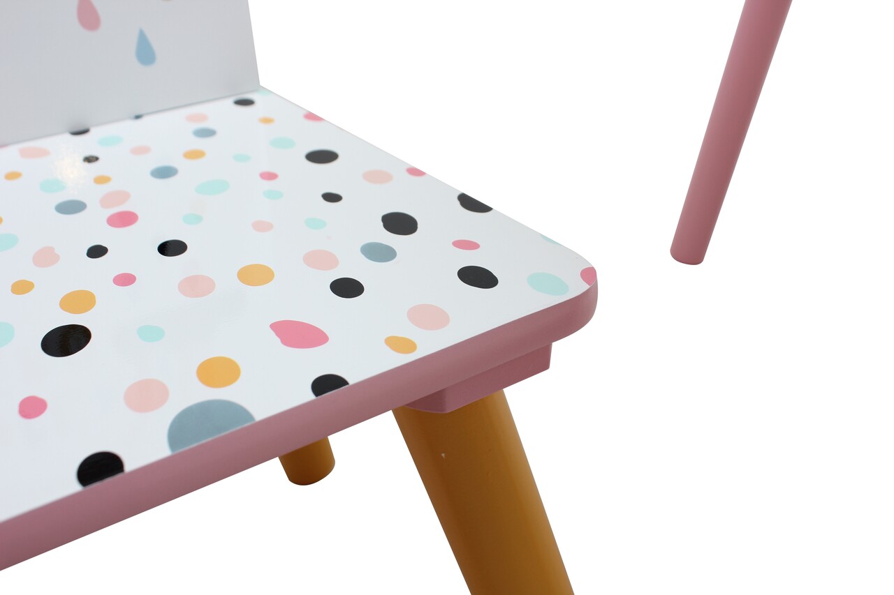 Biroul si scaunele sunt concepute special pentru copii si pentru diversele activitati pe care acestia le desfasoara(desen, pictura, jocuri, scris).