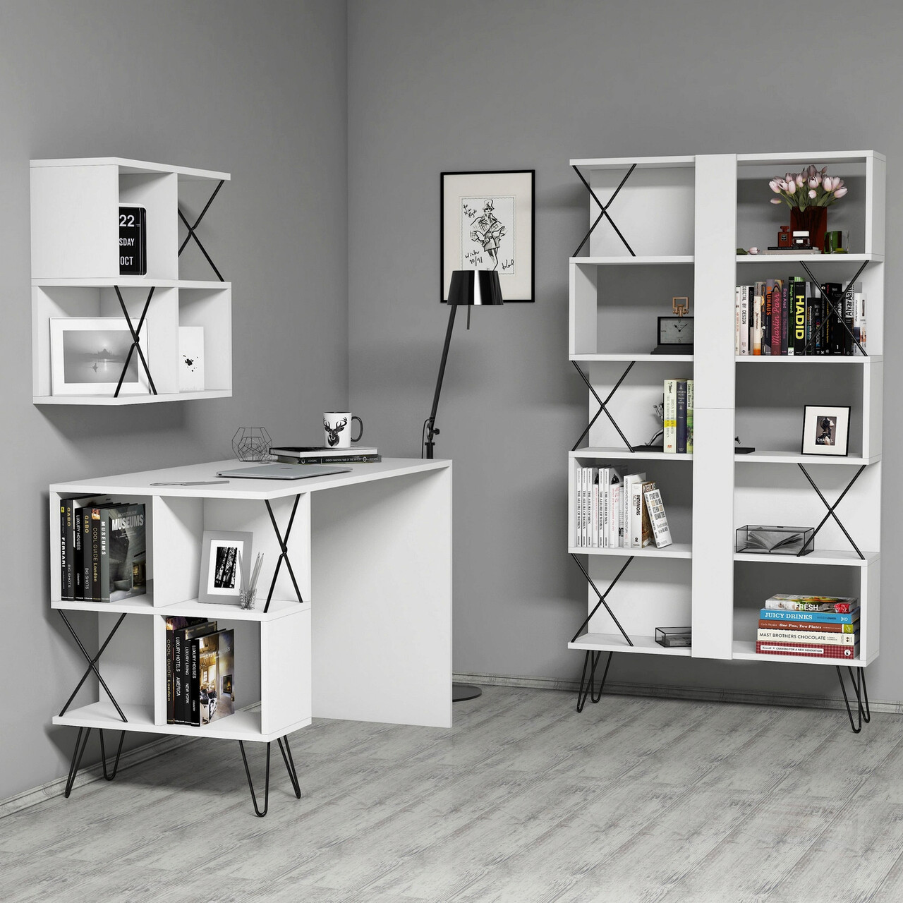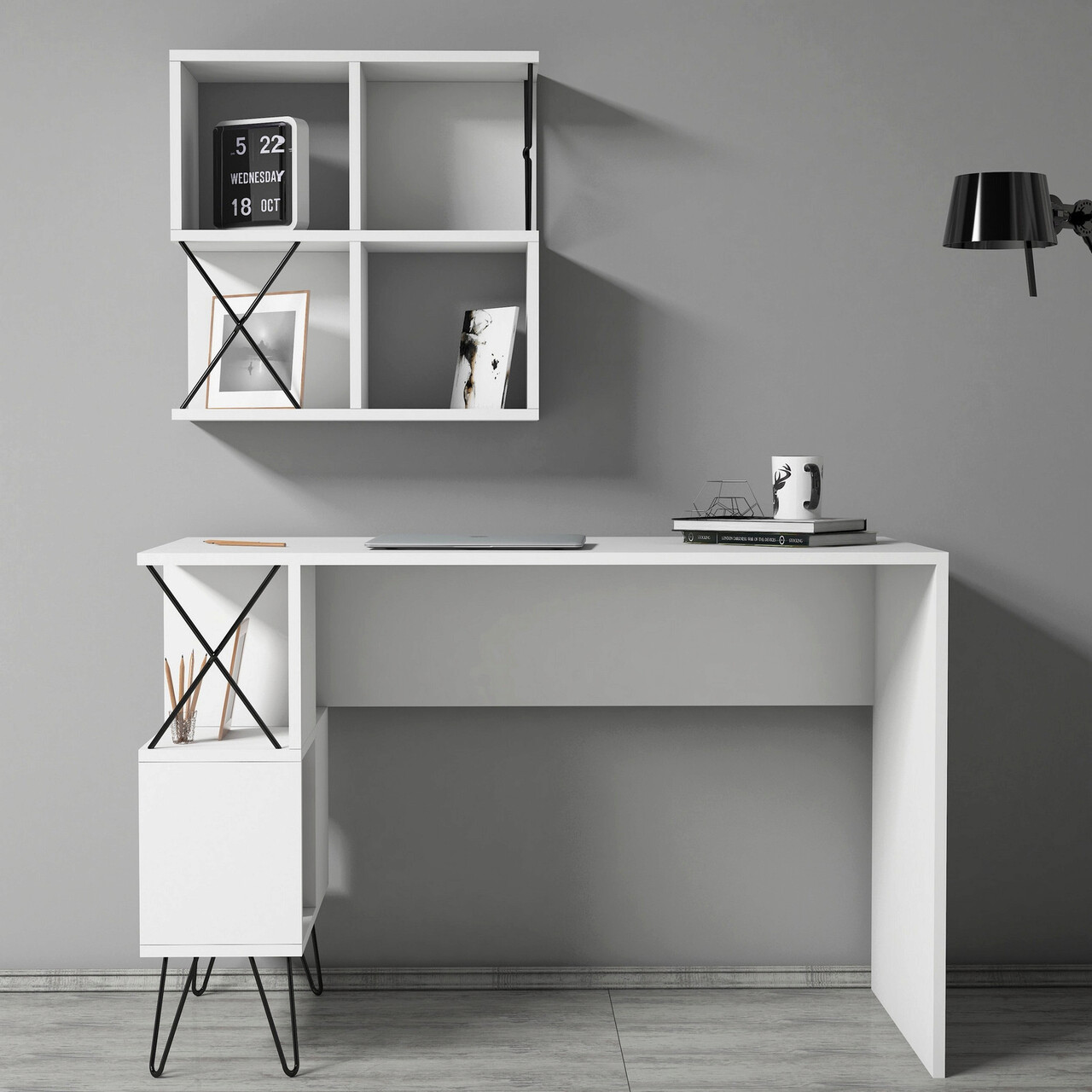 Set birou si biblioteca, Hommy Craft, Extra 2, 120x78 cm, PAL, Alb/Negru