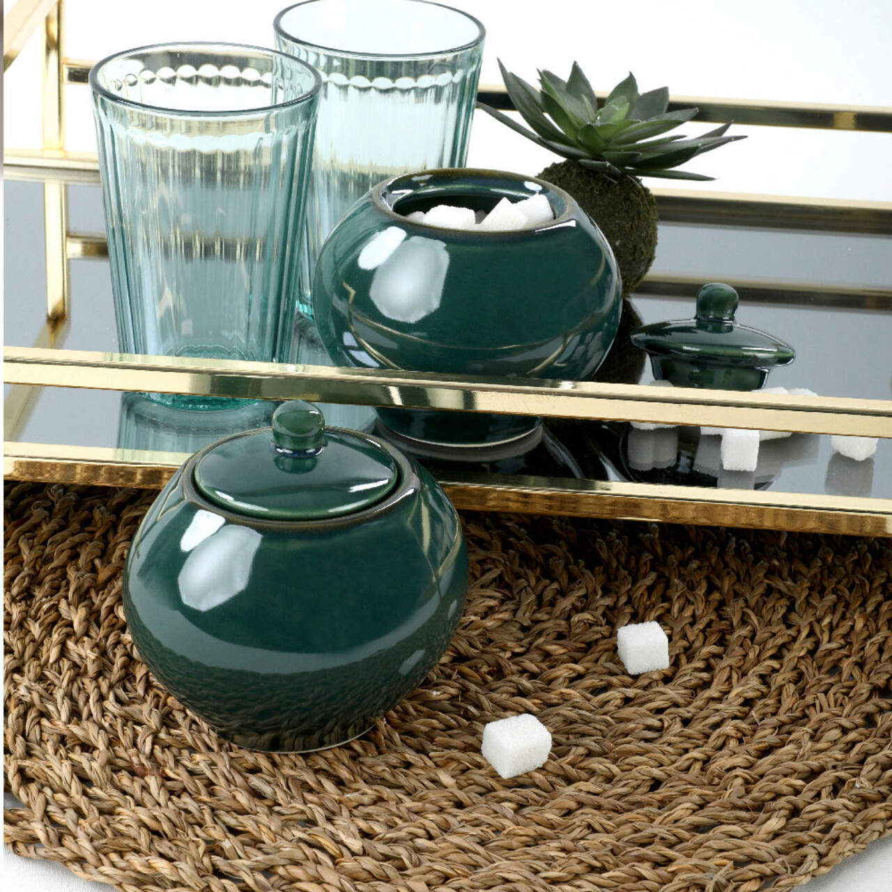 Set boluri de zahăr din ceramică, Hermia, 275KRM1312, Dishwasher - safe up to 60 °C / Microwave - safe, Verde