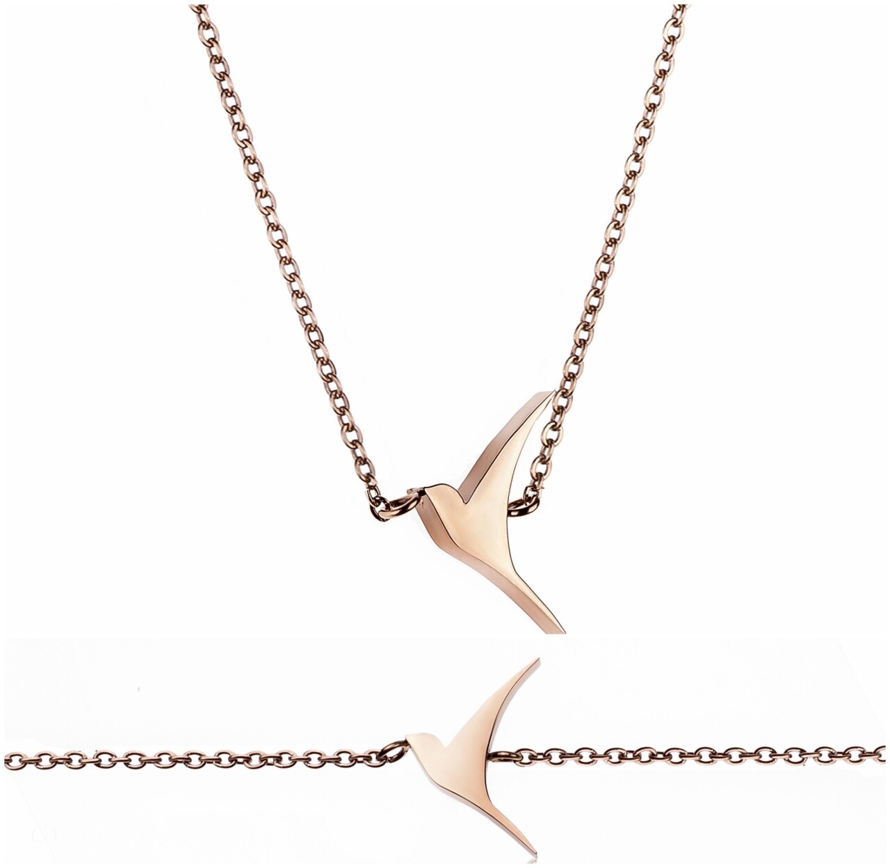 Set bratara si lantisor, Emily Westwood, Rose Gold Birds, inox, auriu