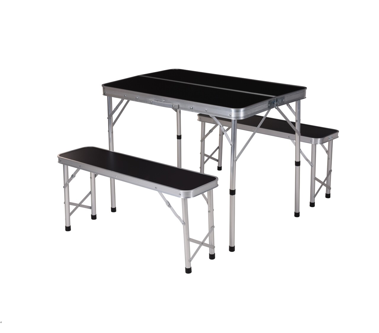 Set camping/picnic, 3 piese, 90x60x70 cm/24x87x40 cm, MDF, negru