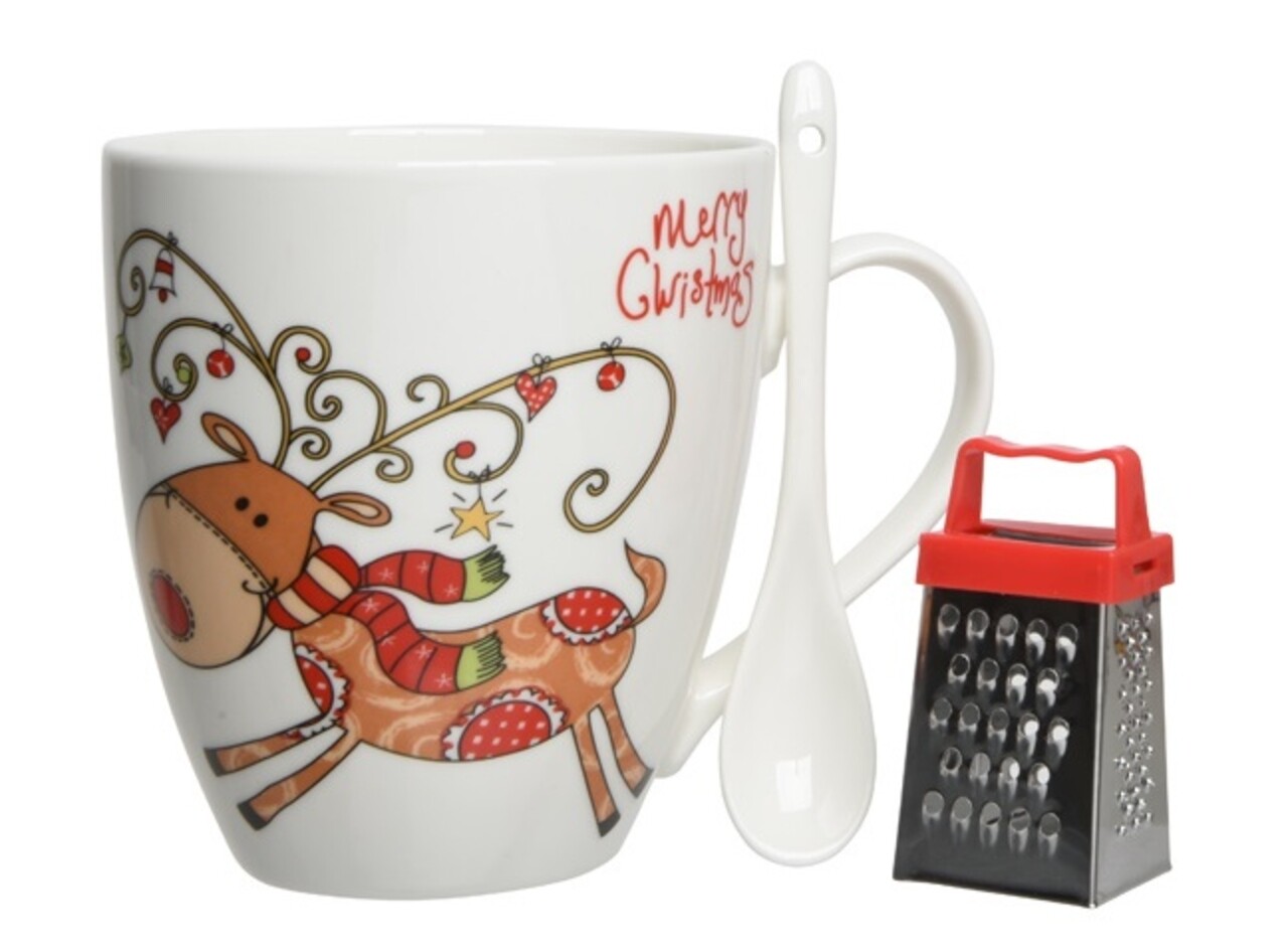 Set cana si mini razatoare Deer, Decoris, portelan, multicolor