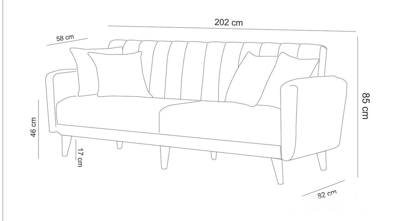Dimensiunea canapelei: Latime: 205 cm Inaltime: 90 cm Adancime: 80 cm
