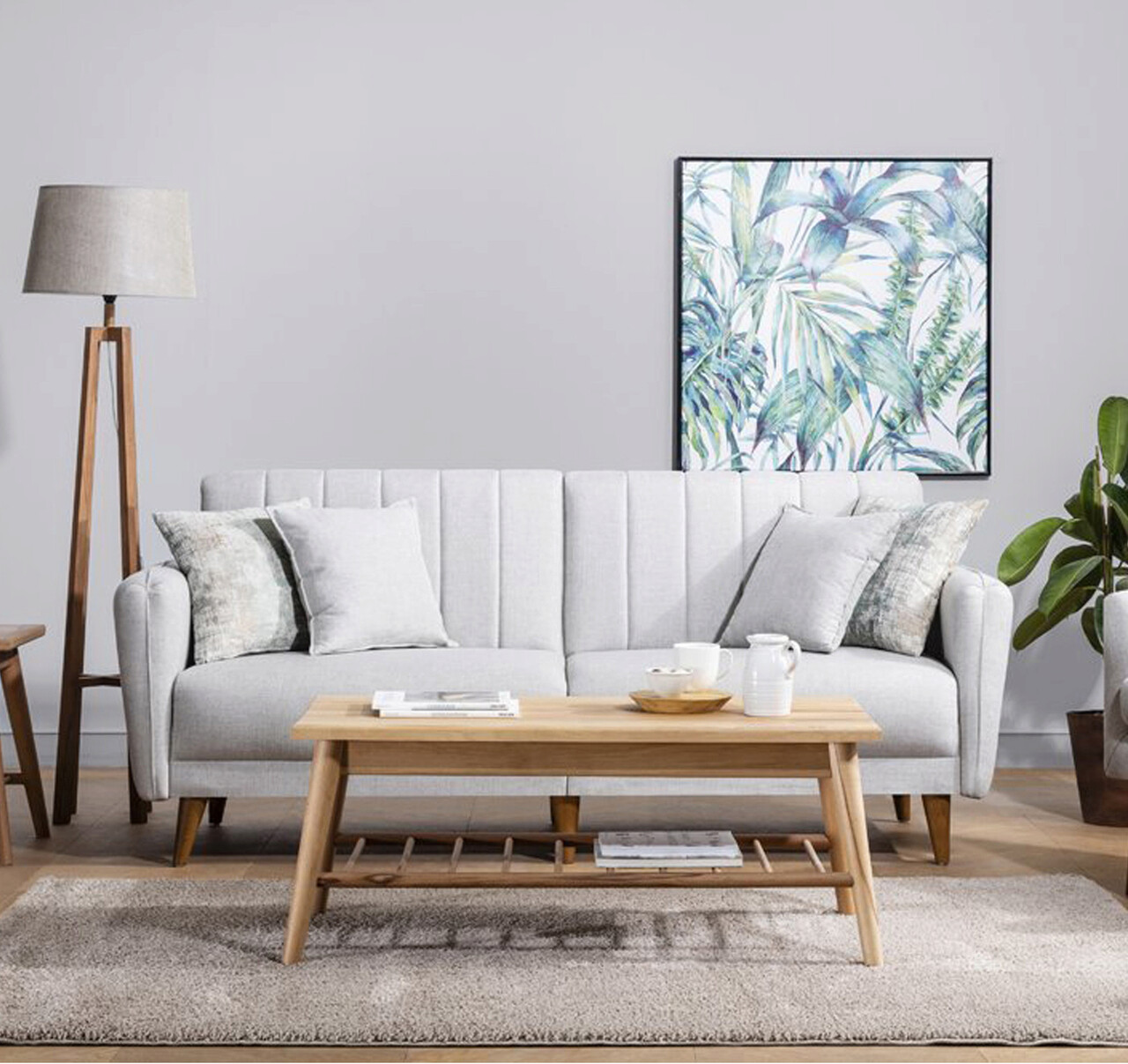 Set canapea extensibilă, Unique Design, 867UNQ1583, Lemn de carpen, Crem