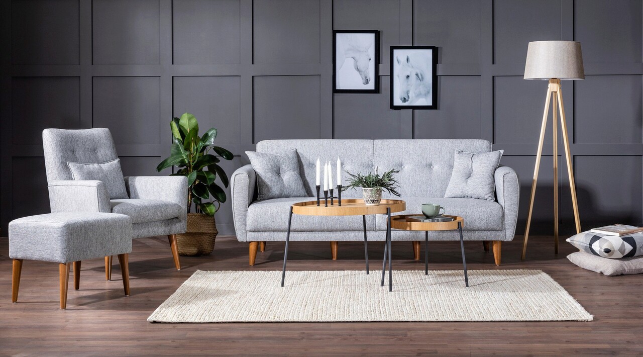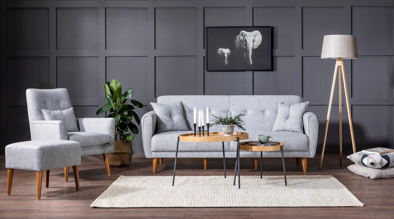Set canapea extensibilă, Unique Design, 867UNQ1588, Lemn de carpen, Gri