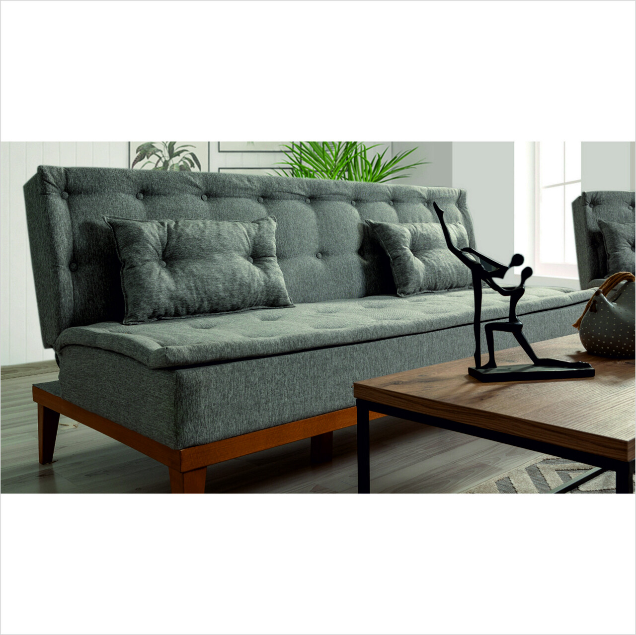 Set canapea extensibilă, Unique Design, 867UNQ1605, Lemn de carpen, Gri inchis