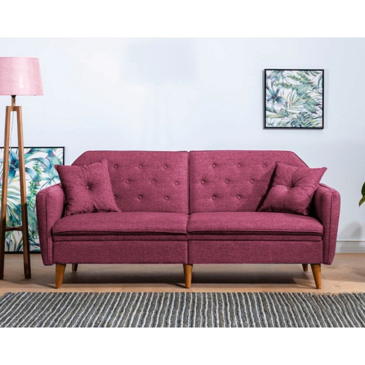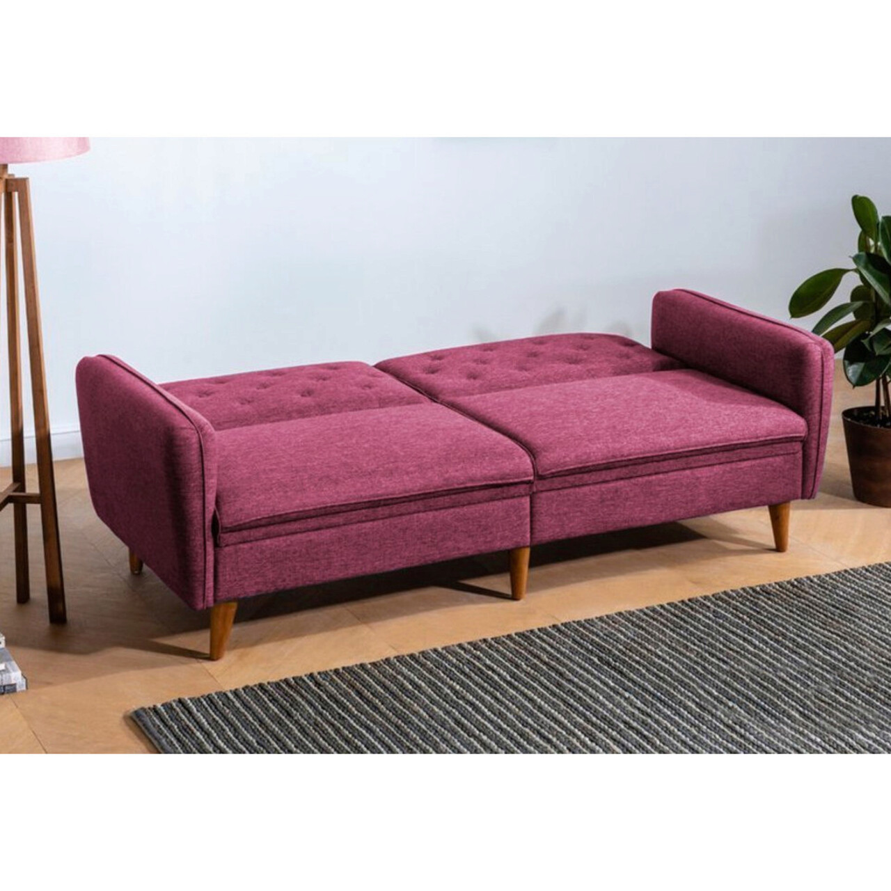 Set canapea extensibilă, Unique Design, 867UNQ1625, Lemn de carpen, Rosu claret
