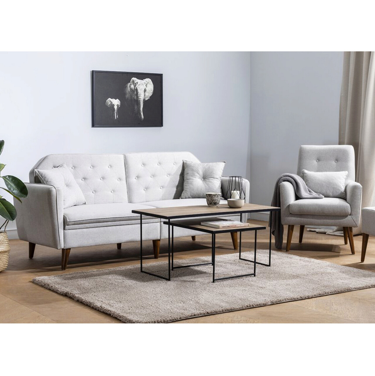 Set canapea extensibilă, Unique Design, 867UNQ1628, Lemn de carpen, Crem
