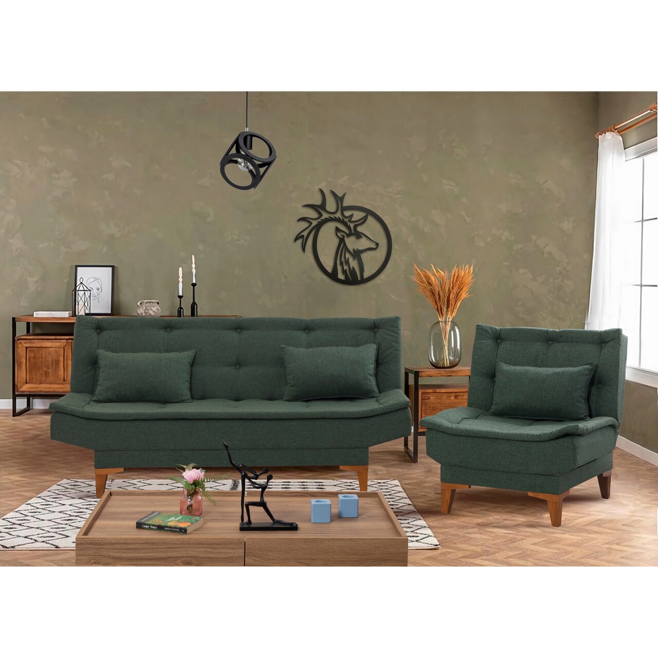 Set canapea extensibilă, Unique Design, 867UNQ1640, Lemn de fag, Verde