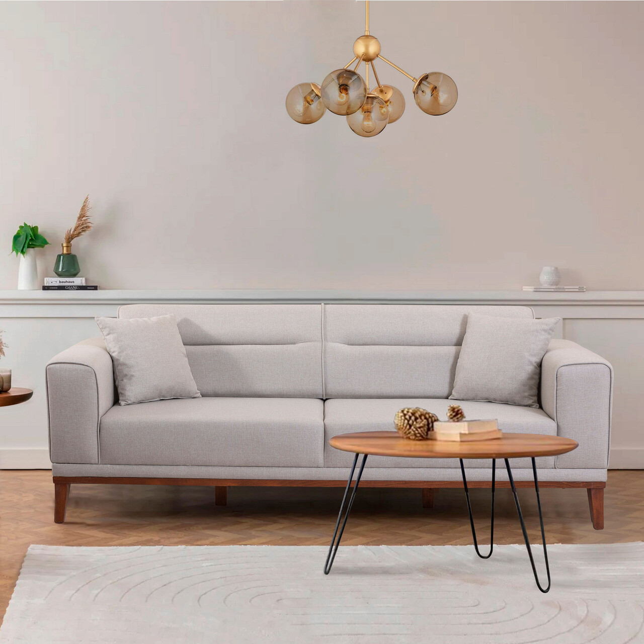 Set canapea extensibilă, Unique Design, 867UNQ1670, Lemn de carpen, Crem