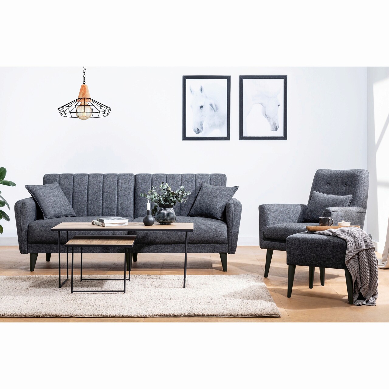 Set canapea extensibilă, Unique Design, 867UNQ1676, Lemn de carpen, Antracit