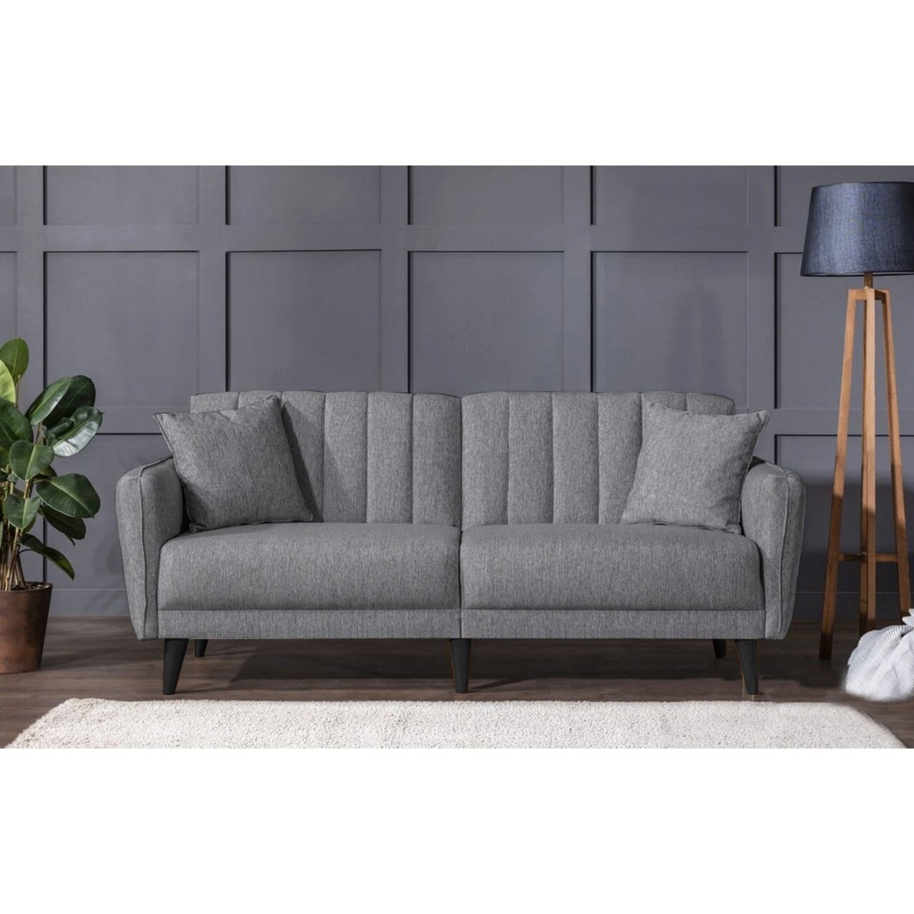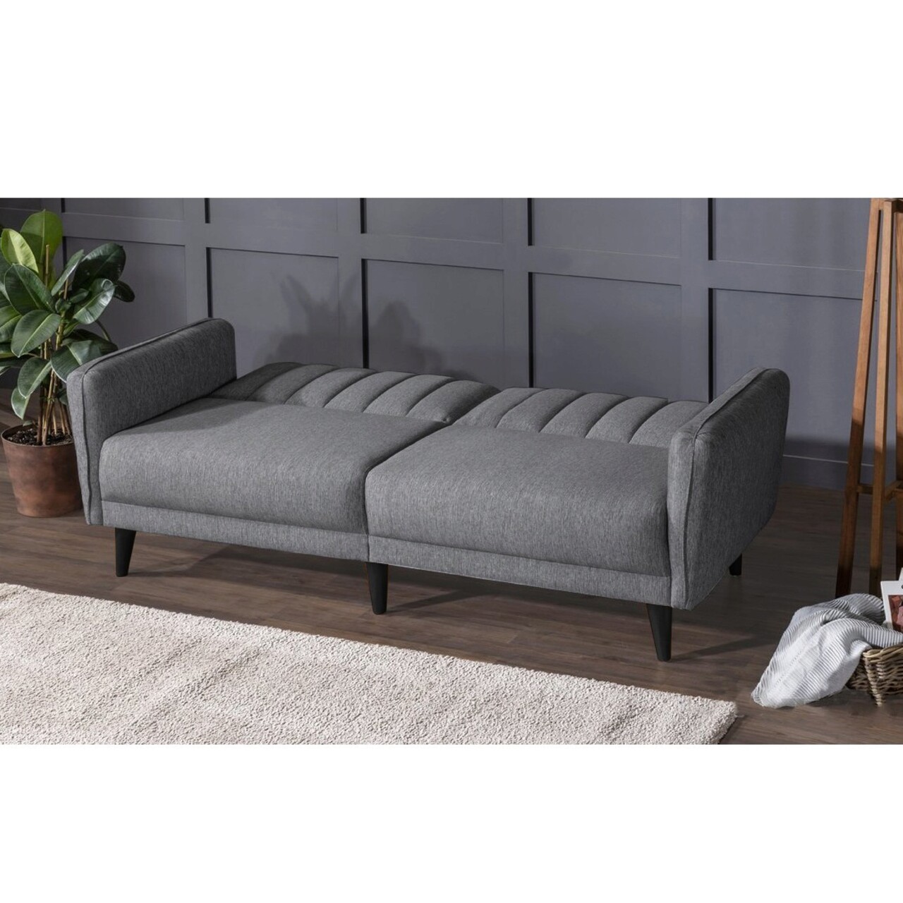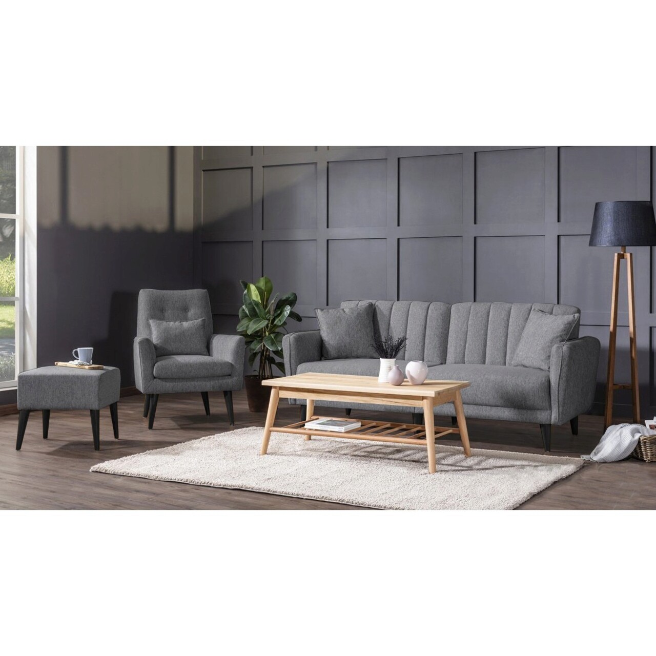 Set canapea extensibilă, Unique Design, 867UNQ1679, Lemn de carpen, Gri inchis
