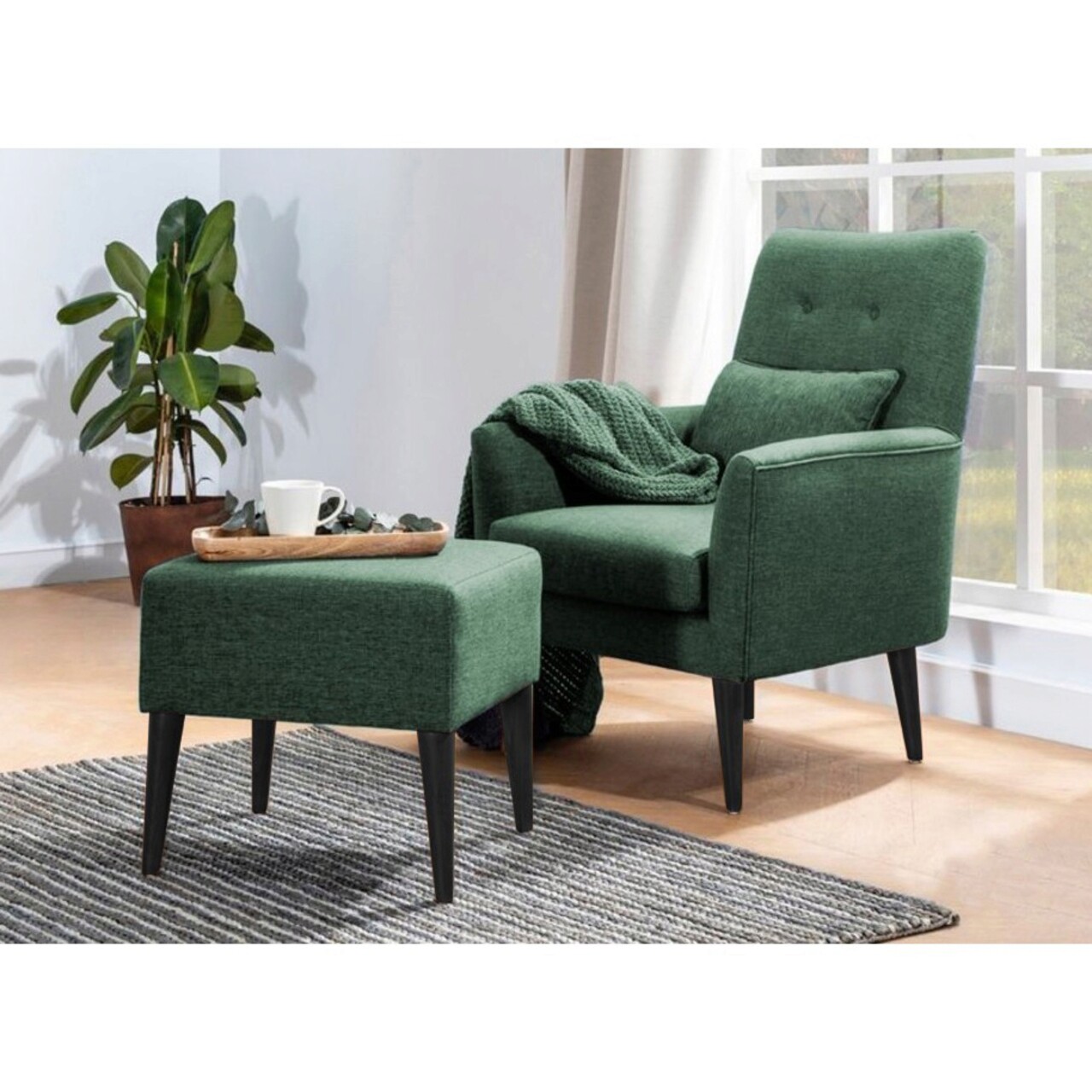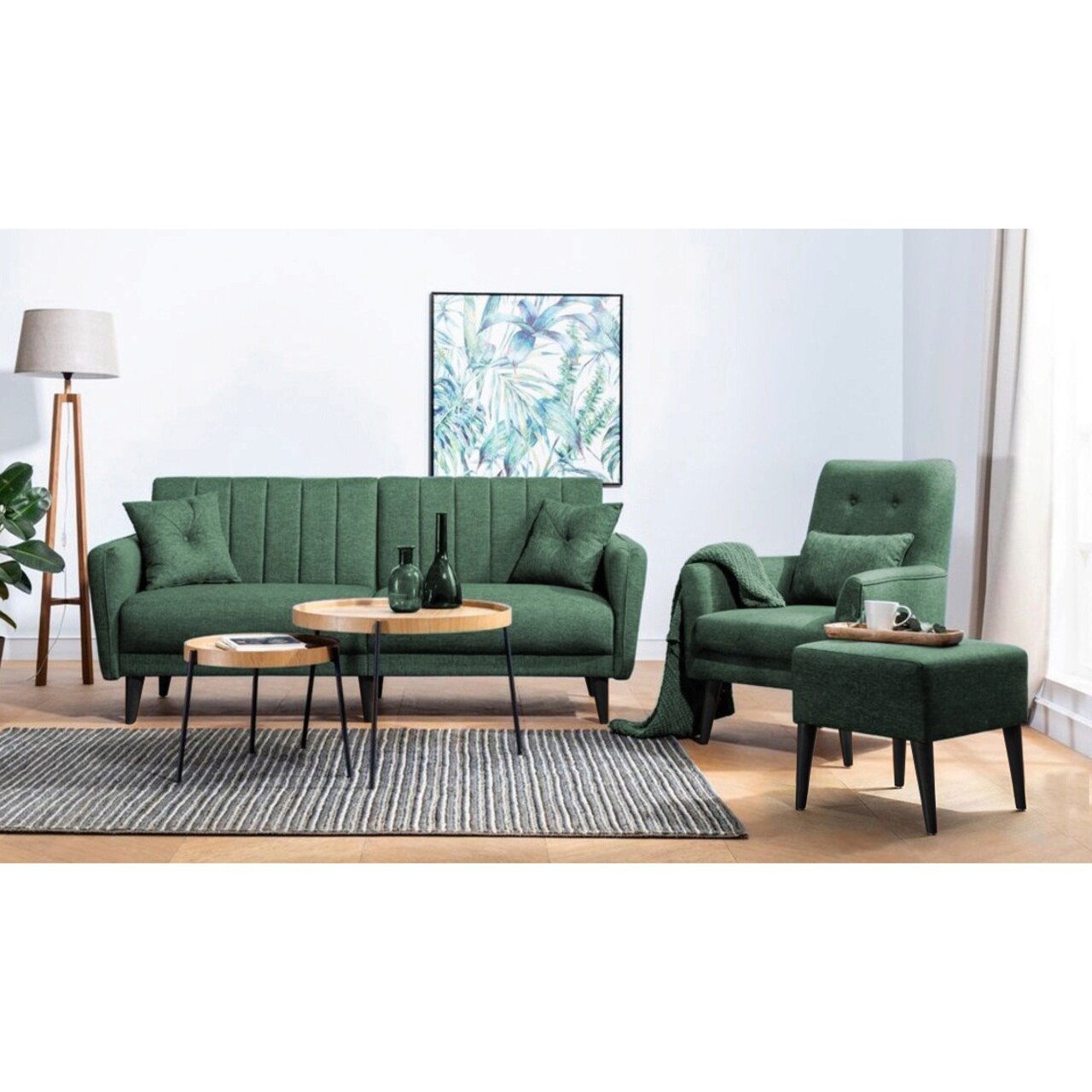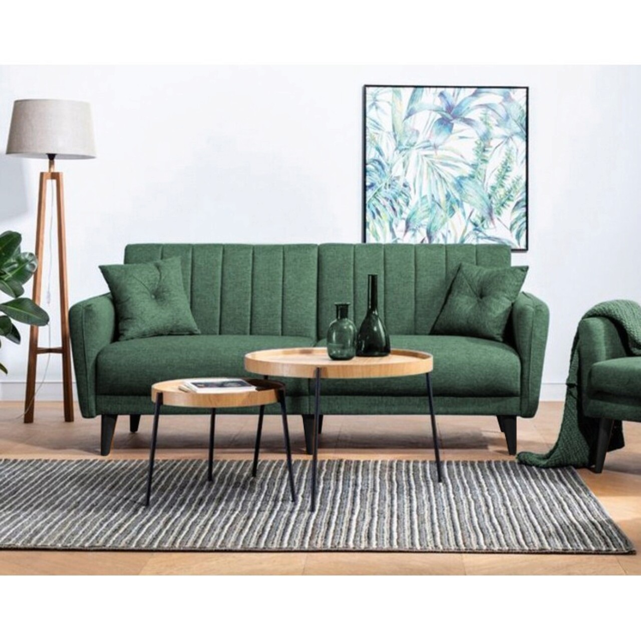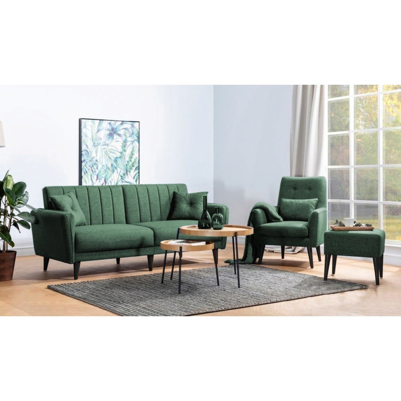 Set canapea extensibilă, Unique Design, 867UNQ1682, Lemn de carpen, Verde