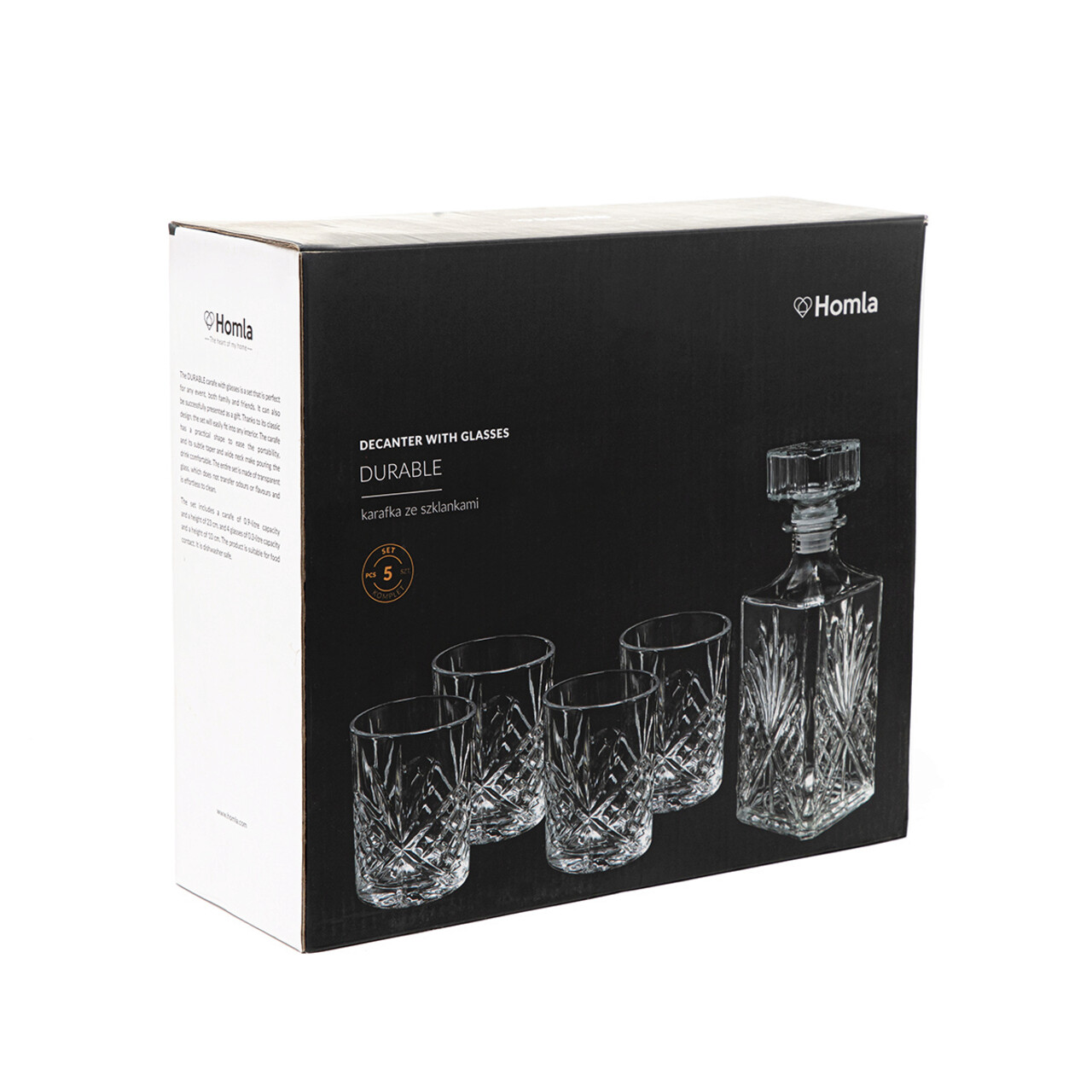 Set carafa si 4 pahare Durable , Homla, 300 ml/900 ml, sticla, transparent