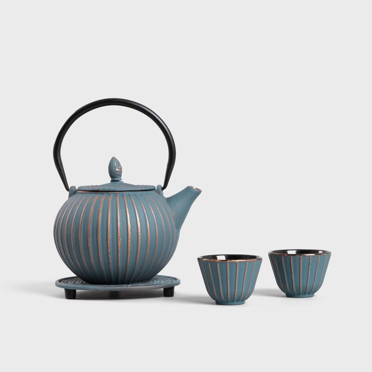 Set ceai 4 piese, ceainic cu suport si 2 cesti, Andreas, Homla, fonta, albastru/auriu