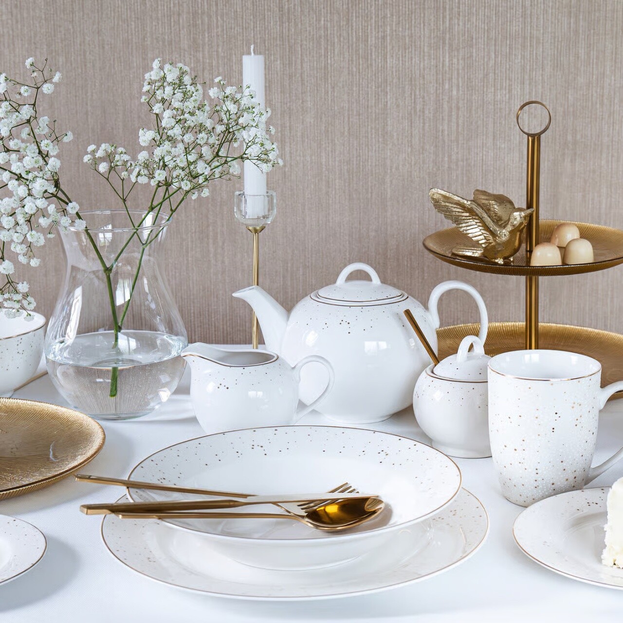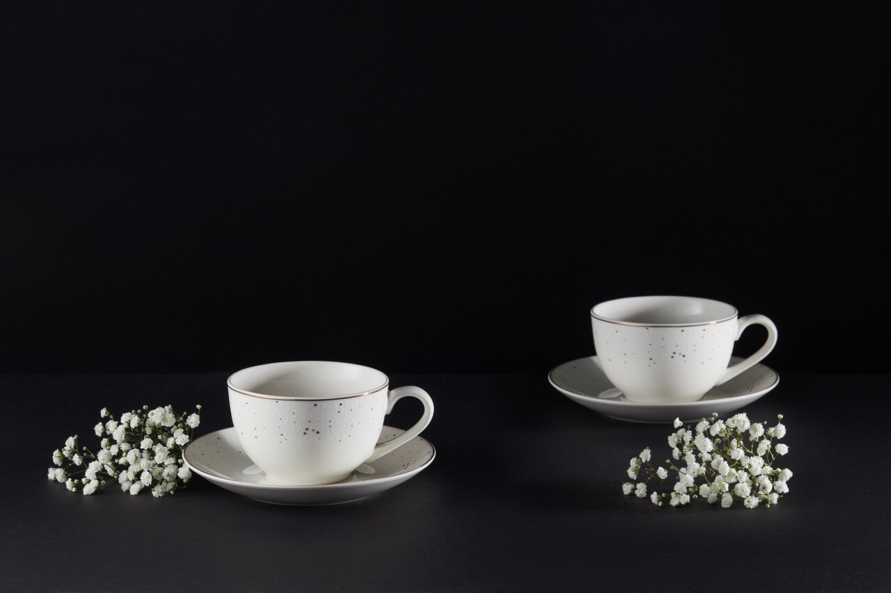 Set ceai / cafea 12 piese, Aurelia, Ambition, 220 ml, portelan, alb/auriu