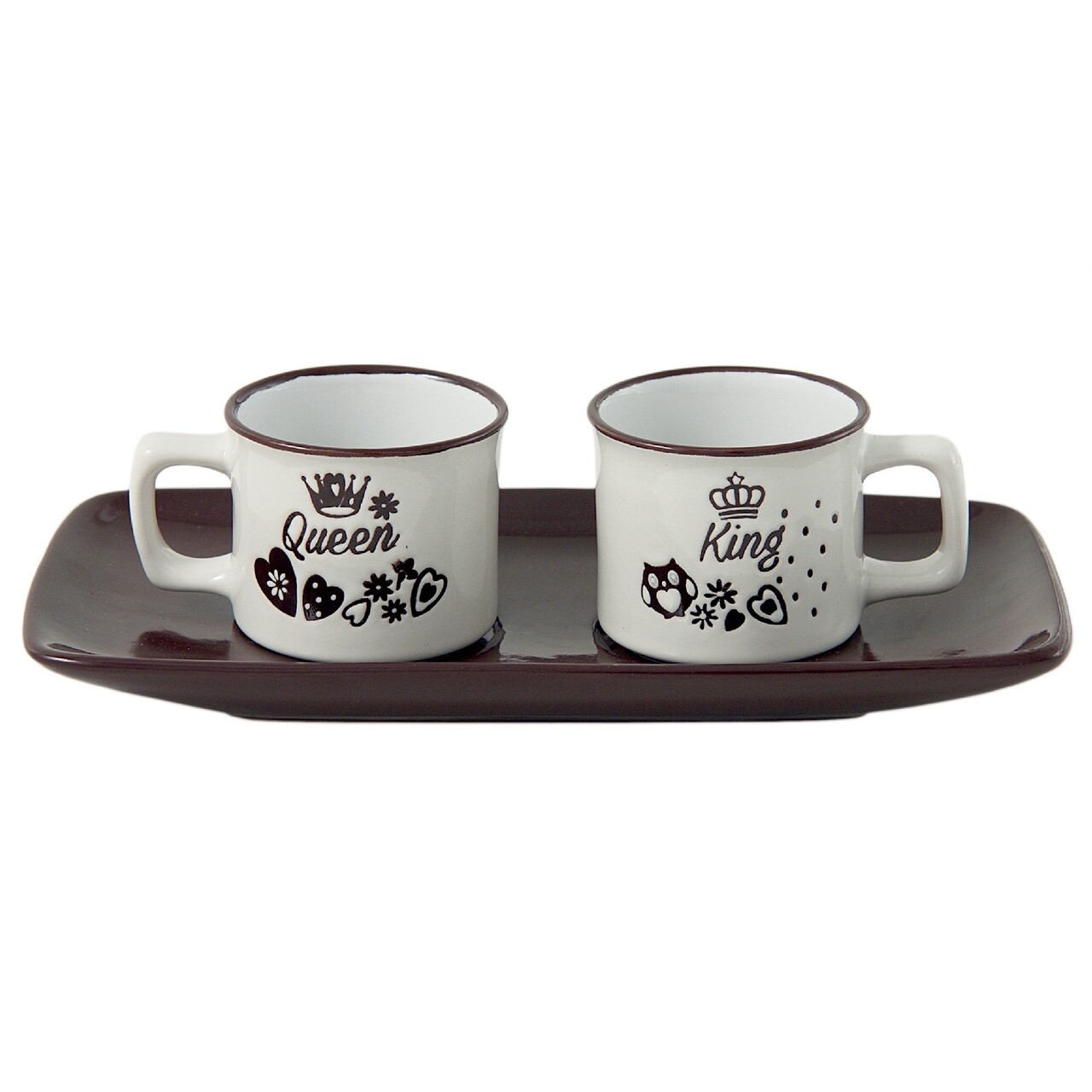 Set ceai/cafea pentru 2 persoane, Wald Tete a Tete, 20.5 x 10.5 x 2.2 cm, ceramica, alb/maro