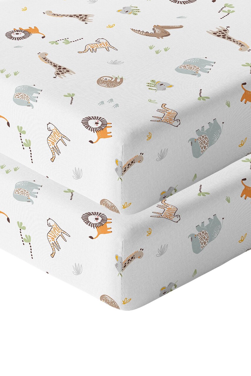 Set cearceaf de pat cu elastic pentru copii, Junge Jungle, Wheeppo, Bumbac Ranforce