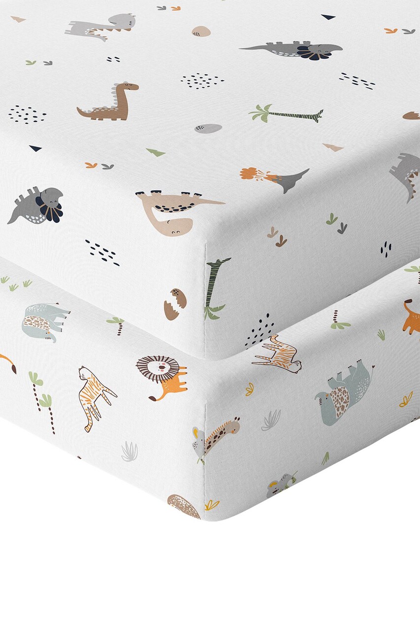 Set cearceaf de pat cu elastic pentru copii, Jungle Dinozor, Wheeppo, Bumbac Ranforce