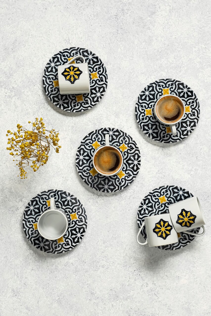 Set cesti de cafea, Beros, 973BRS1607, Portelan, 6 x 6 x 5 cm, 90 ml, 6 cesti cafea, Multicolor