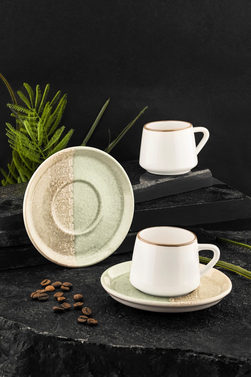 Set cesti de cafea, Hermia, 721NBL3164, Numai farfurii. Se pot spăla în mașina de spălat vase. / Se poate folosi la cuptorul cu microunde., Verde