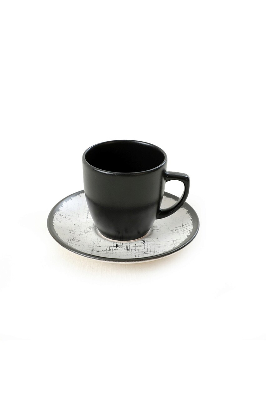 Set cesti de cafea, Keramika, 275KRM1916, Ceramica , Dimensiune ceașcă de cafea: 6 x 6 x 6 cm / 95 ml (6 bucăți), Alb/Negru