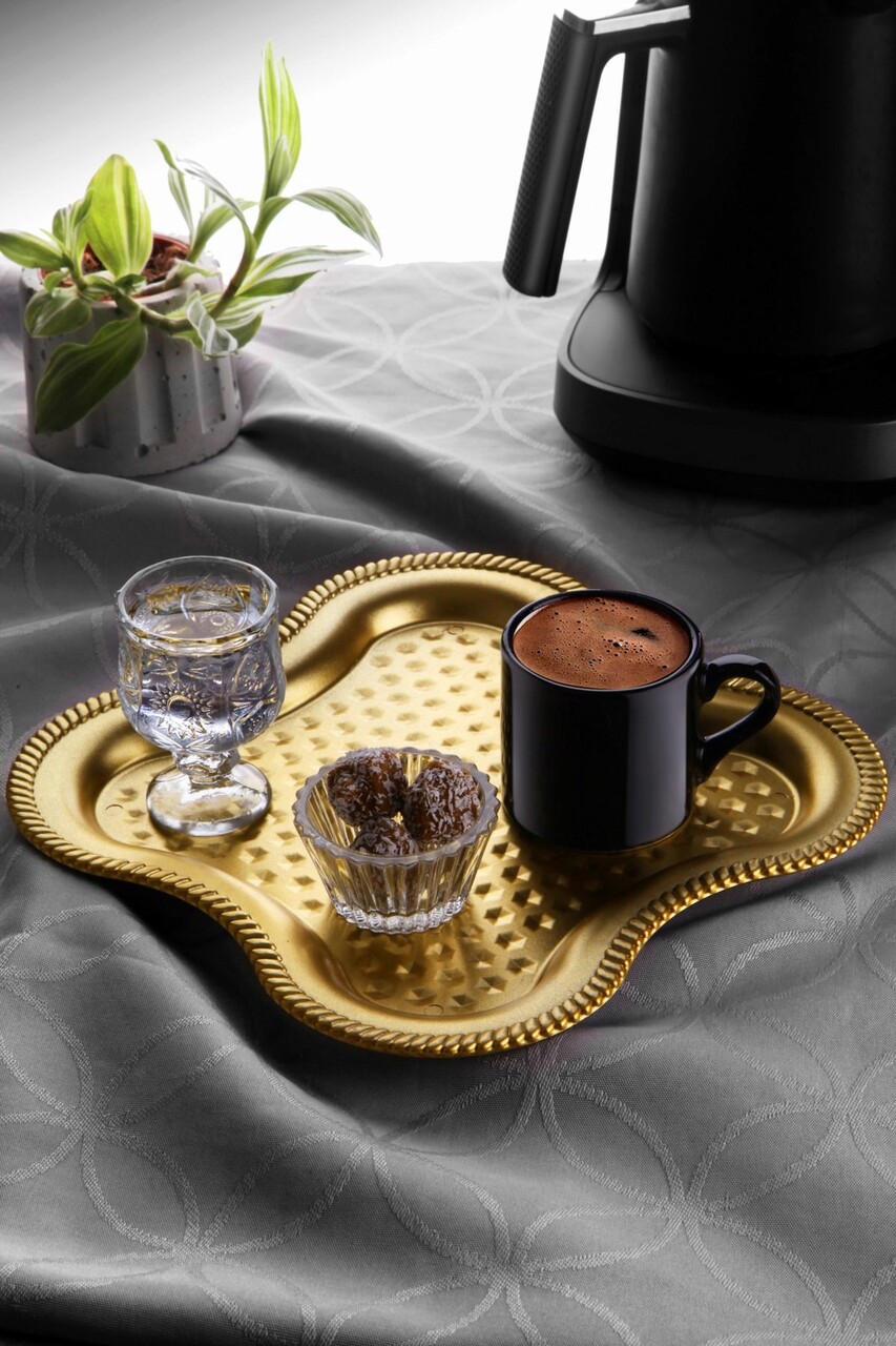 Set cesti de cafea, Rowe, 196RWE2522, Plastic, Include tava servire 21 x 21 cm, Auriu