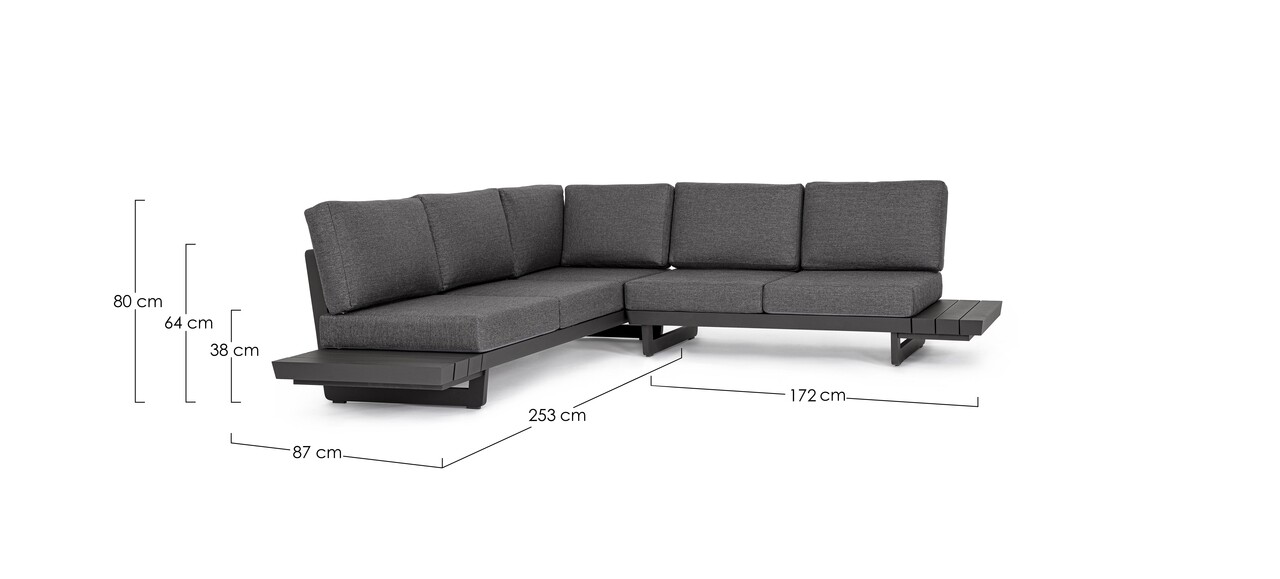 Set coltar de gradina/terasa 2 piese Infinity, Bizzotto, aluminiu/tesatura impermeabila Ofelin, gri carbune