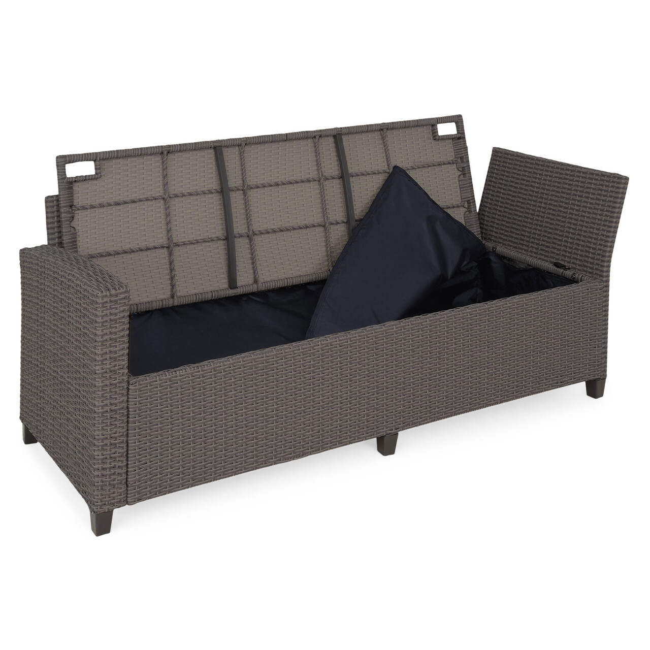 Set coltar de gradina/terasa 3 piese, cu spatiu de depozitare Baxter, 179x67x73 cm/ 145x74x67 cm, otel/poliester, gri/negru