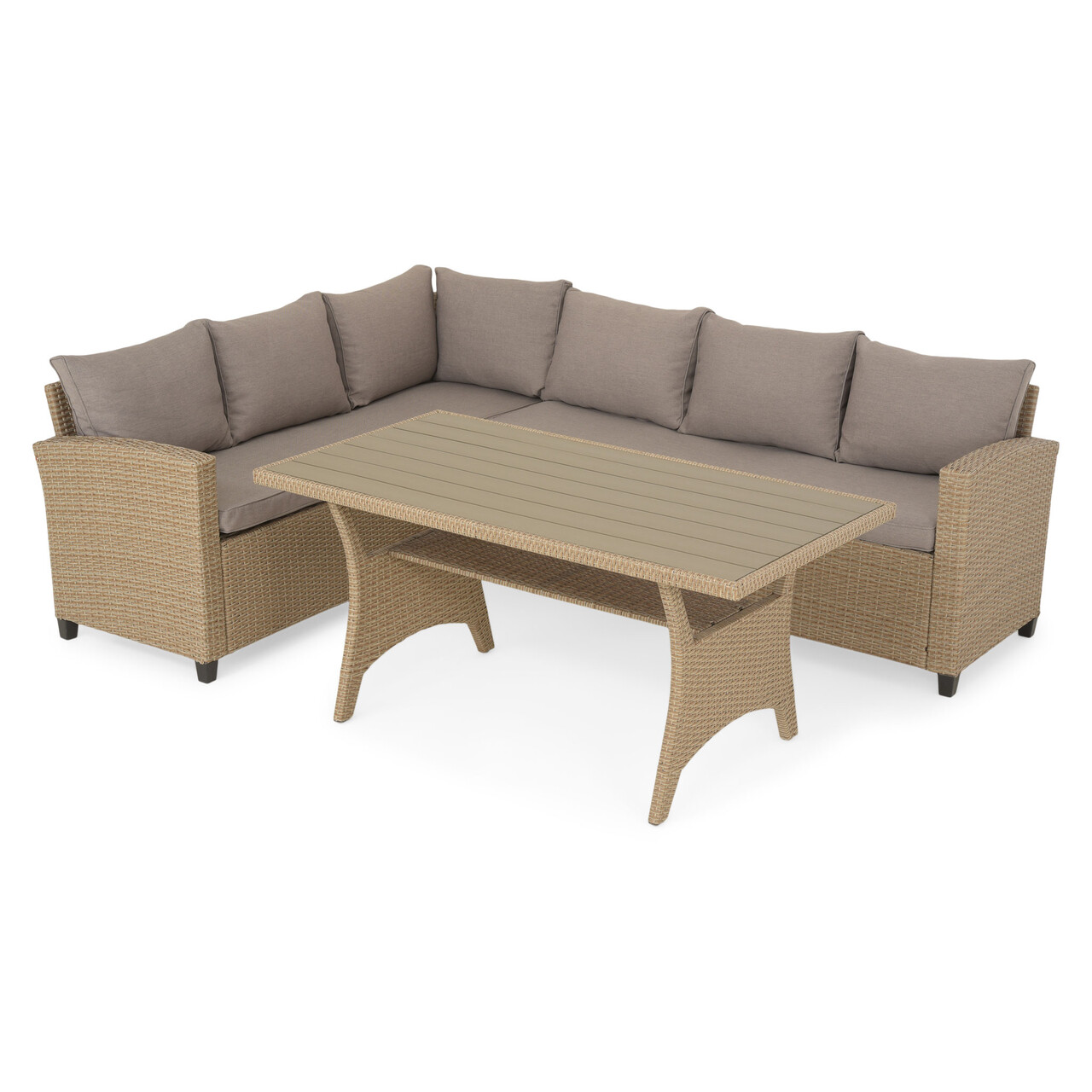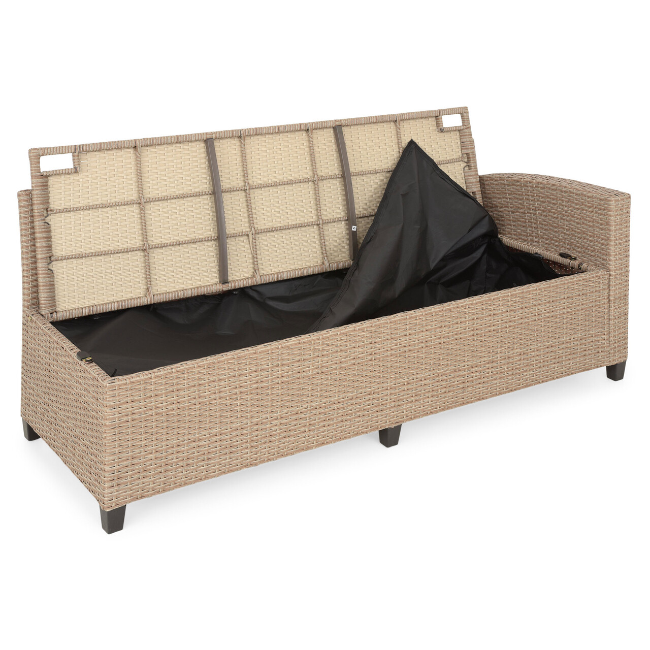 Set coltar de gradina/terasa 5 piese, cu spatiu de depozitare Baxter, 179x67x73 cm/ 145x74x67 cm, otel/poliester, natur/bej