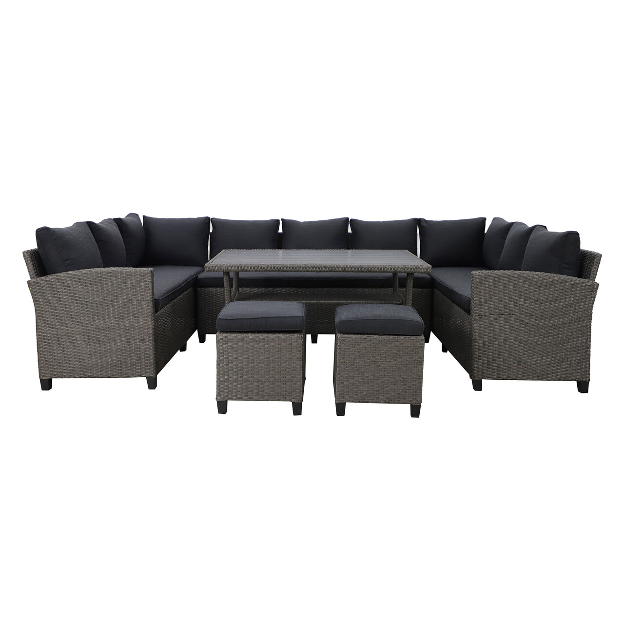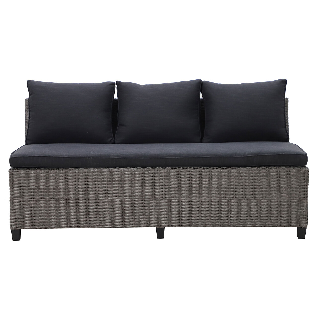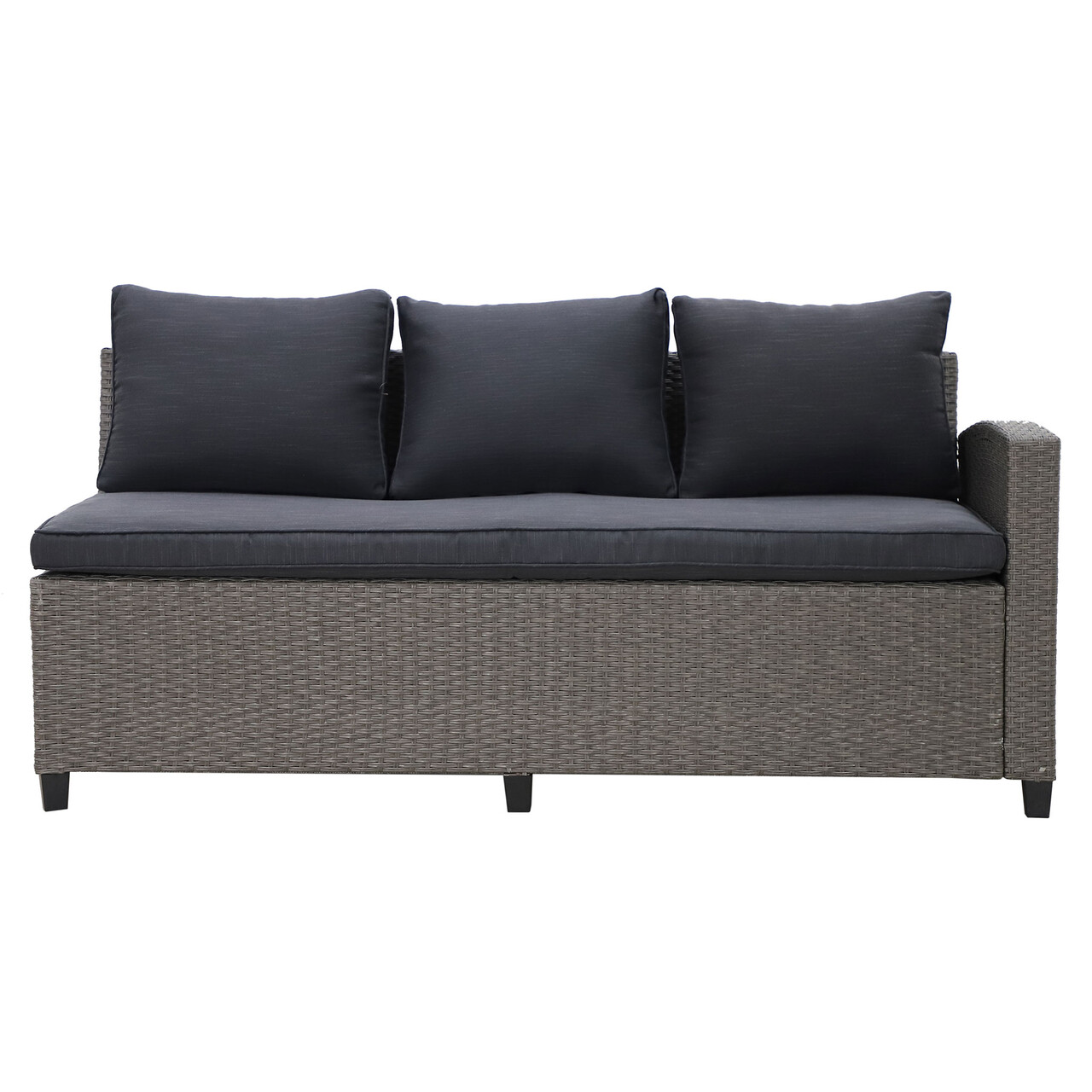 Set coltar de gradina/terasa 6 piese, cu spatiu de depozitare Baxter, 120x82x67 cm/ 165x67x73 cm, otel/poliester, gri/negru
