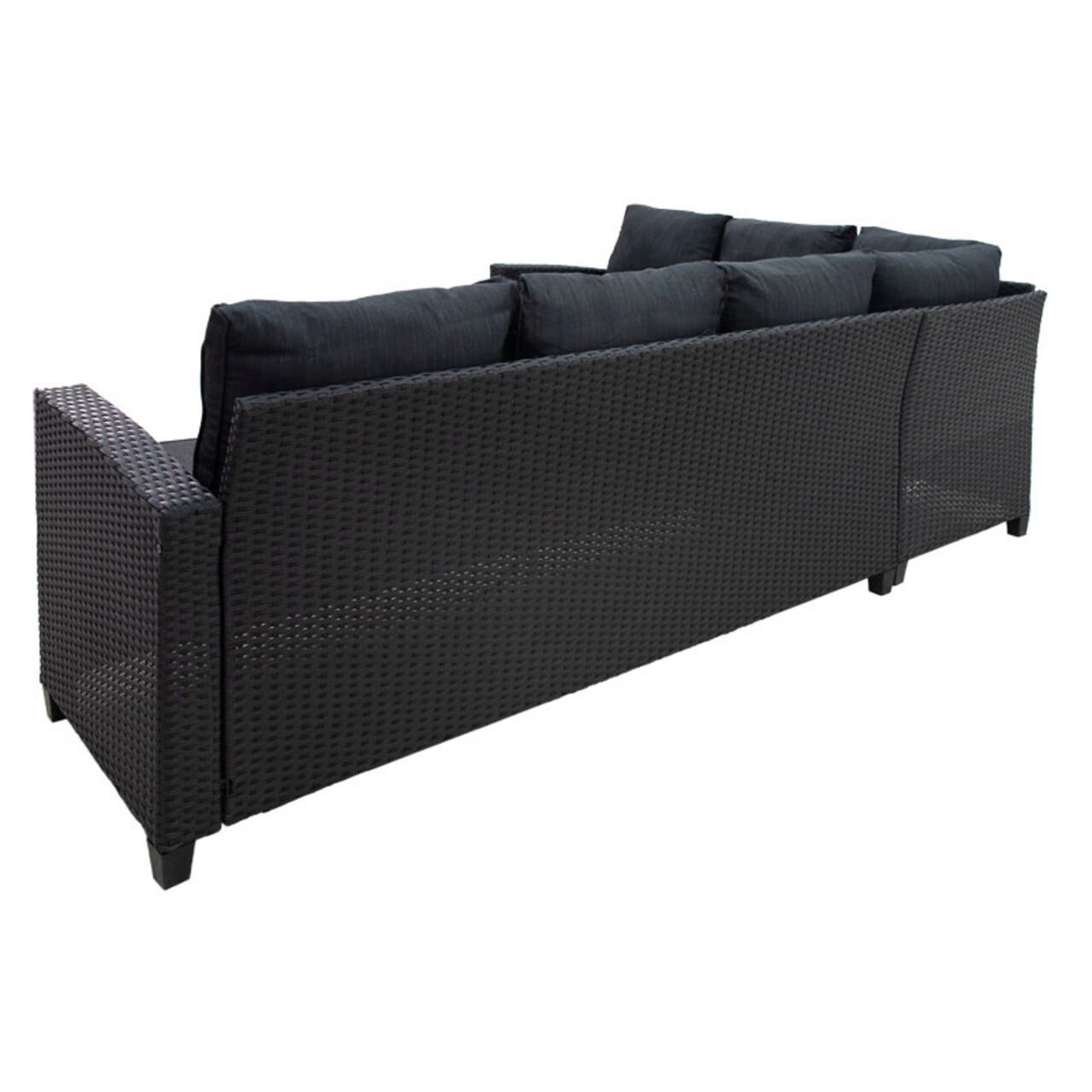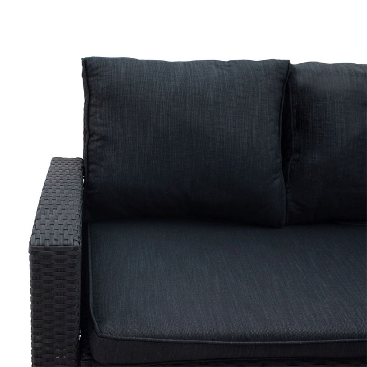 - Canapea de colt realizata din metal si ratan sintetic de culoare neagra. Dimensiuni 168 - 178 x 67 x 73 cm.