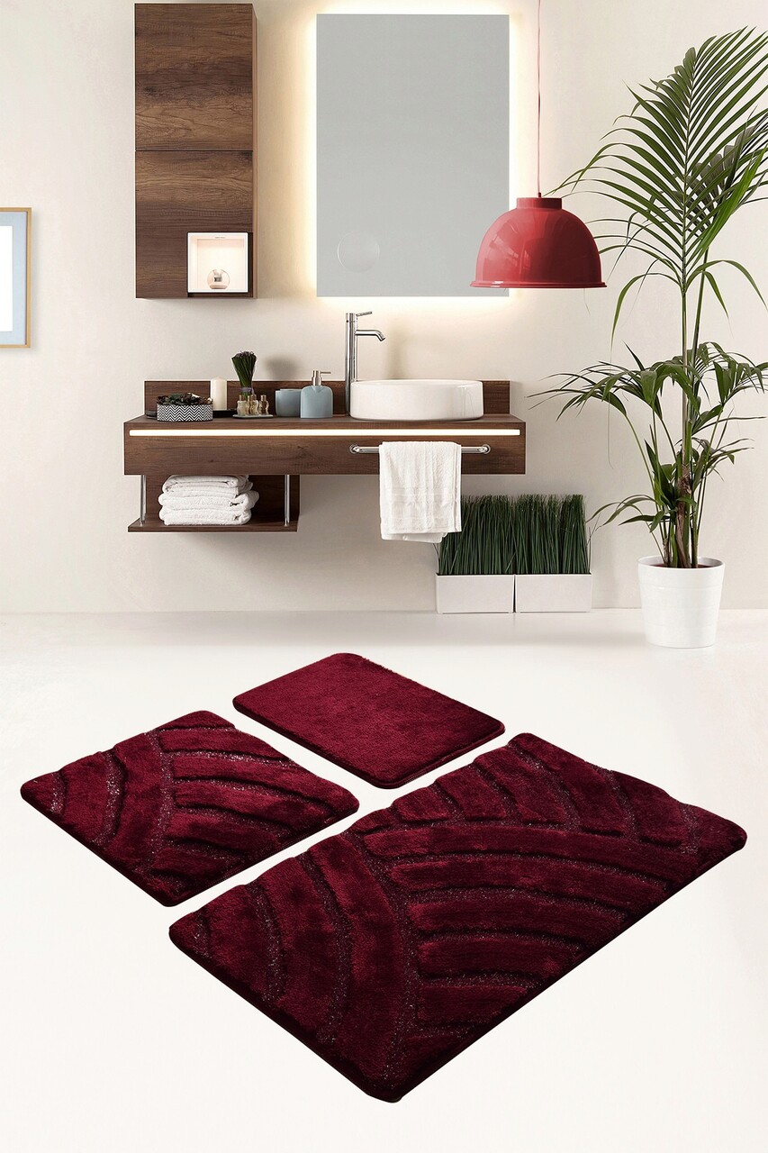 Set covoraș de baie (3 bucăți), Chilai, Alya, Acril, Visiniu
