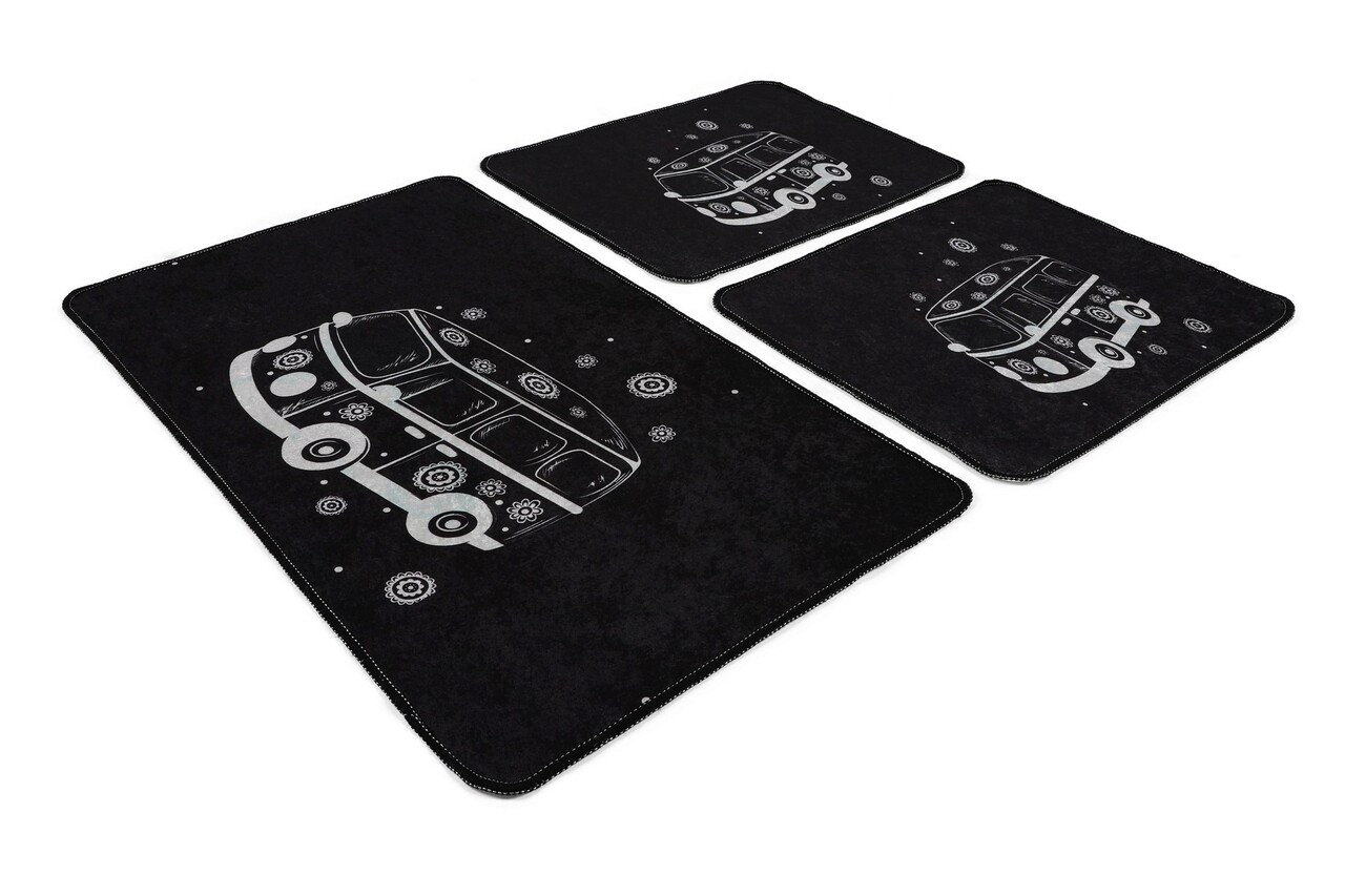Set covoraș de baie (3 bucăți), Chilai, Bus, Catifea, Multicolor